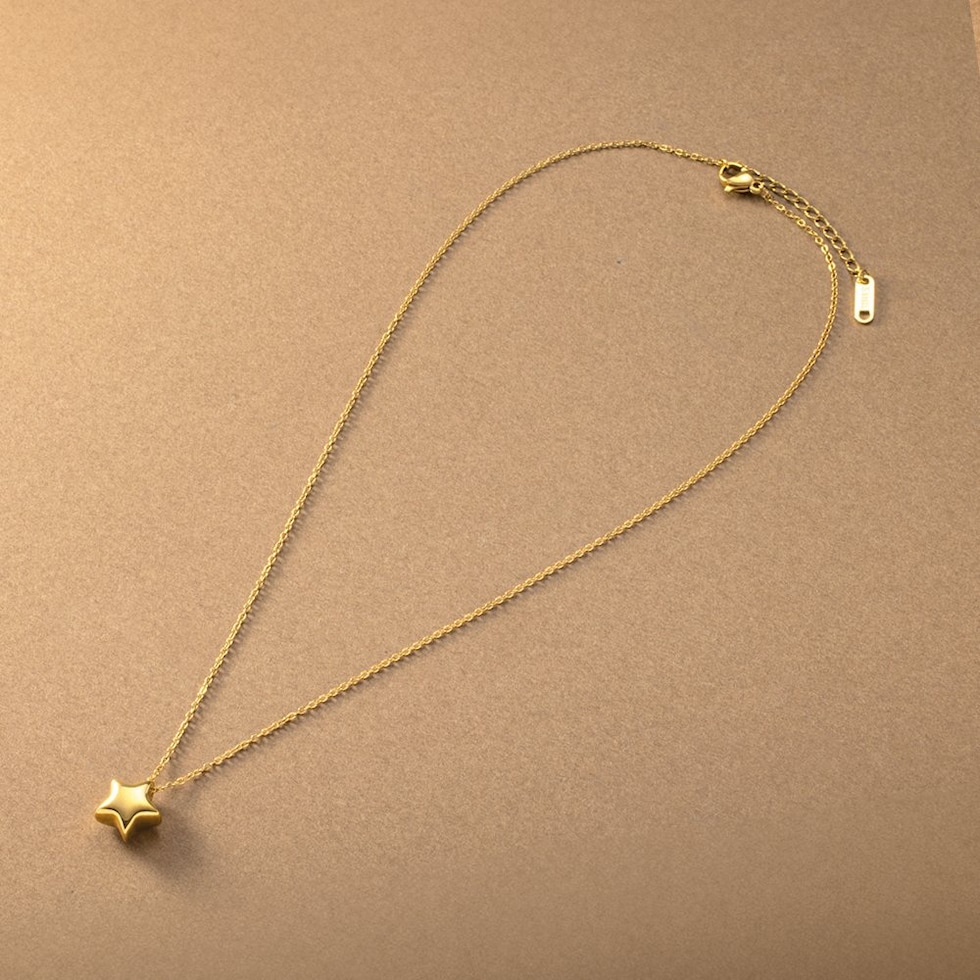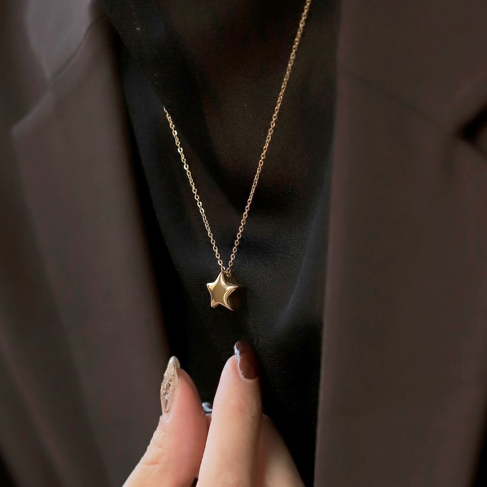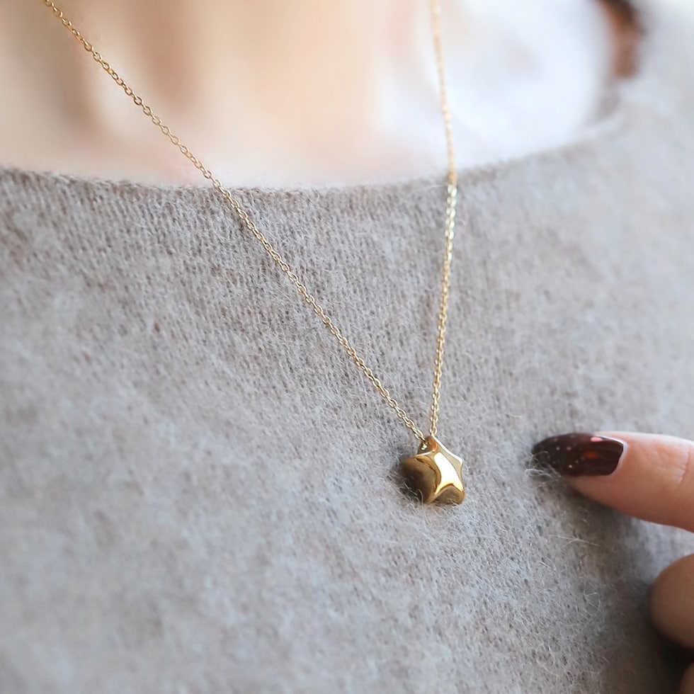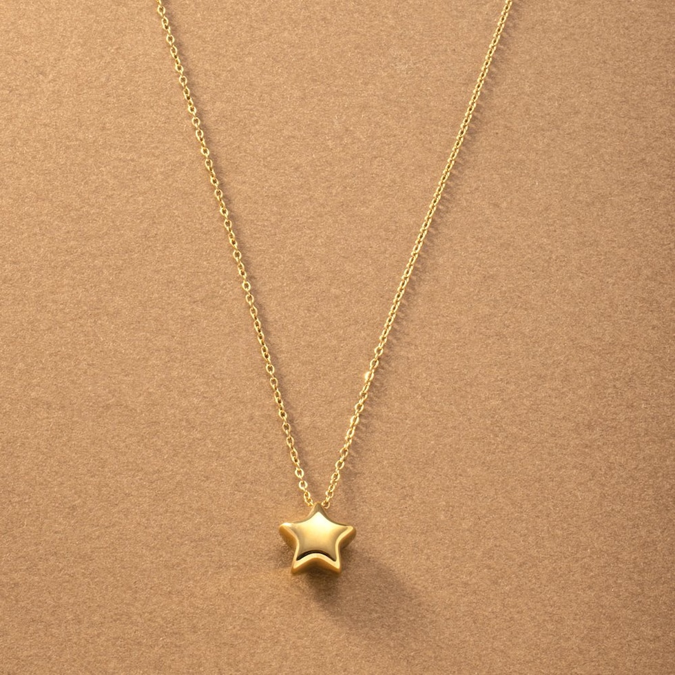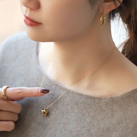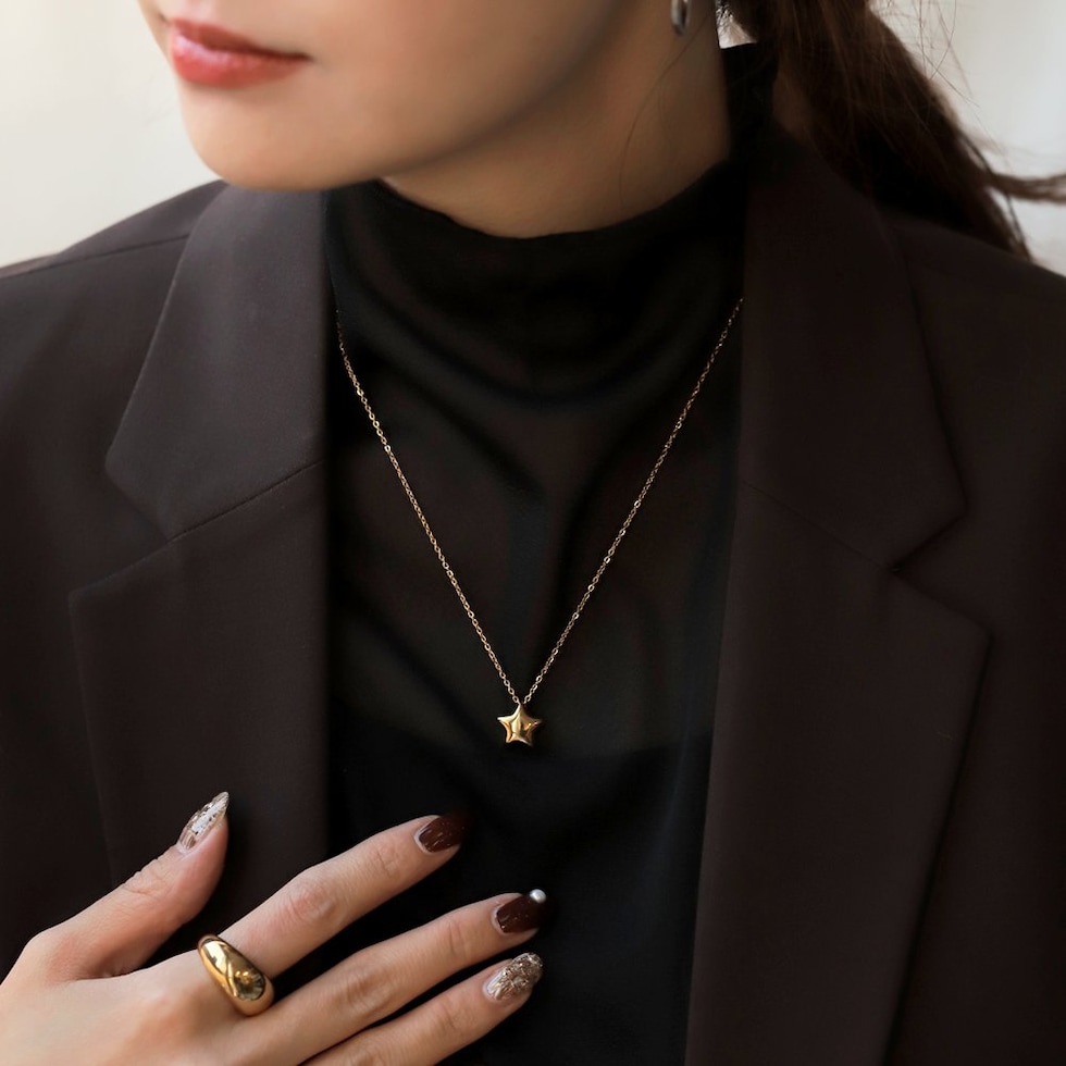 ぷっくりフォルムと艶感が大人可愛いメタルスターのネックレス。小ぶりなデザインとさりげない存在感で上品に身に着けられるひと品です。錆びにくく傷に強いステンレス製でデイリーに活躍間違いナシのアイテムです。