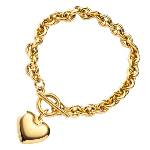 ぷっくりハートのステンレス製マンテルブレスレット。ぷっくりとした艶やかなメタルハートとちょっぴりゴツめのチェーンフォルムが抜群に今っぽい。錆びにくいステンレス製でデイリーに活躍しそう◎