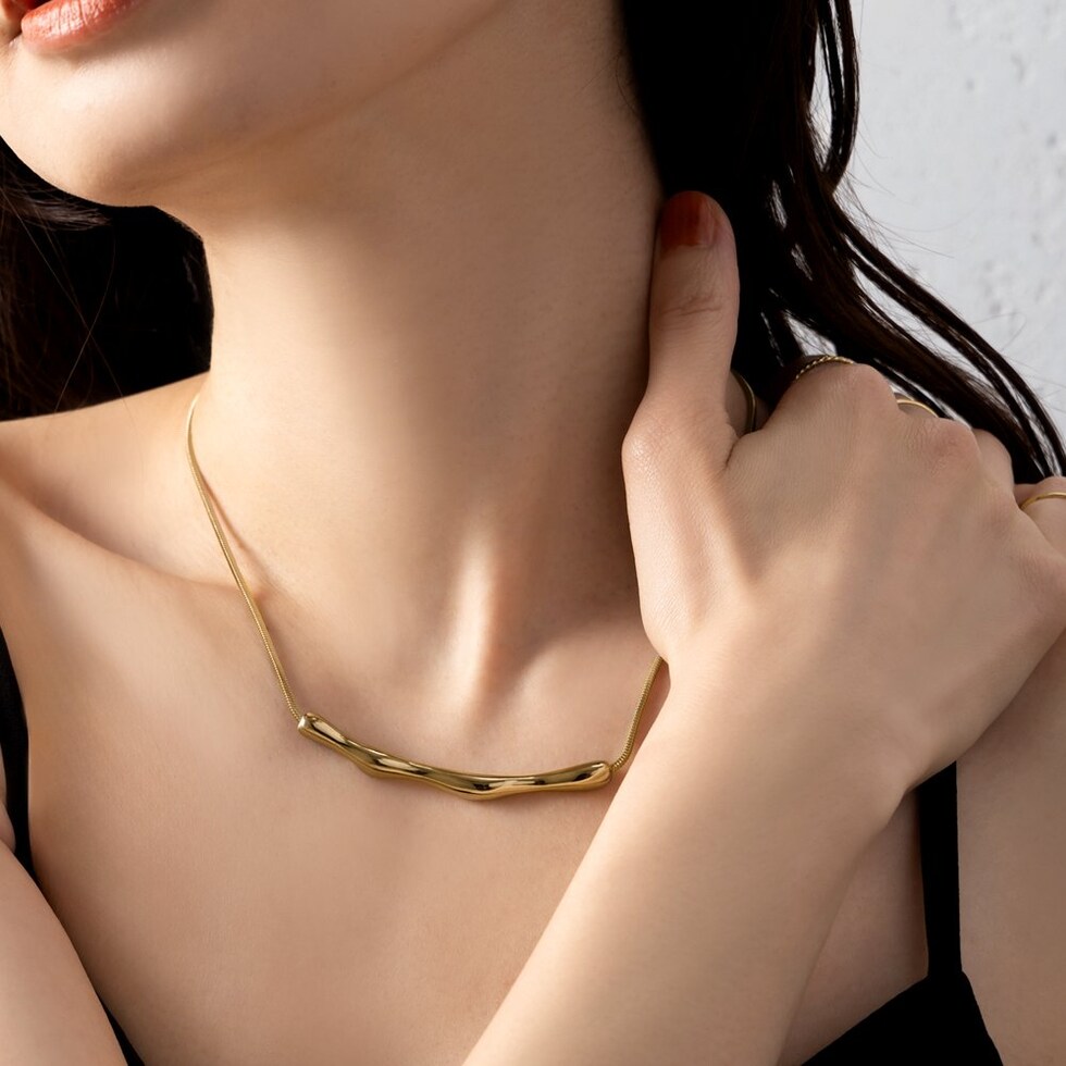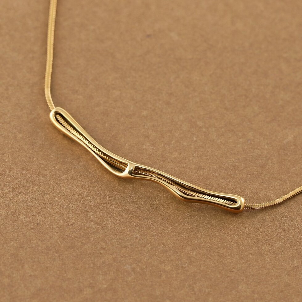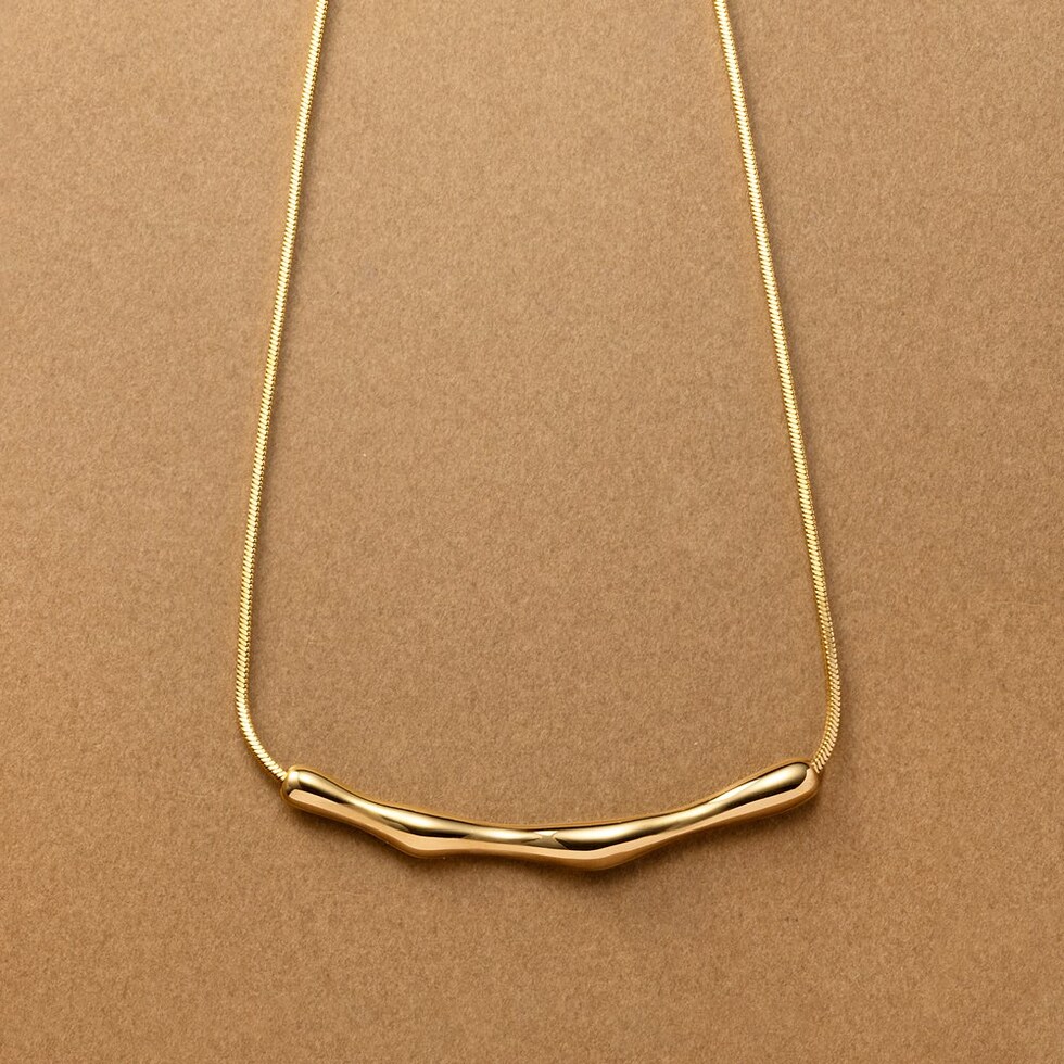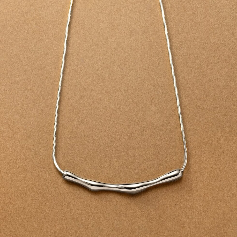 存在感のあるクラフト調のメタルが高見えなネックレス。しなやかなスネークチェーンとの組み合わせが洗練された大人な印象をプラスします。錆びにくく傷に強いステンレス製でデイリーコーデのアクセントにピッタリなひと品。