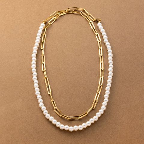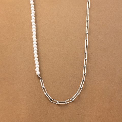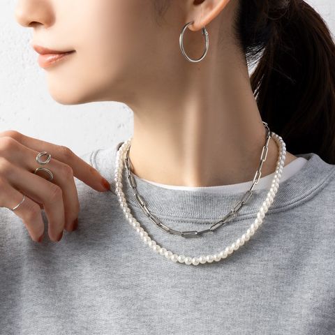 ネックレス ステンレス 金属アレルギー サージカルステンレス レディース ロング つけっぱなし ロング チェーン パール 2連 2重 3way Y字 コンビ cream dot ゆうパケット [シルバー_ワンサイズ]