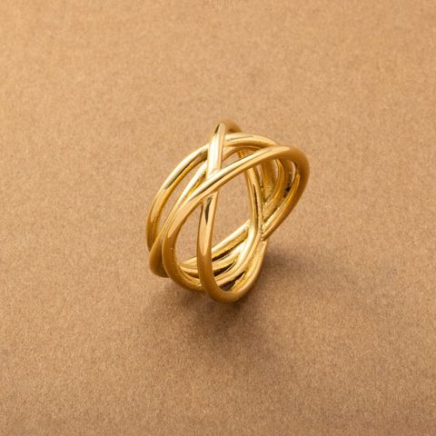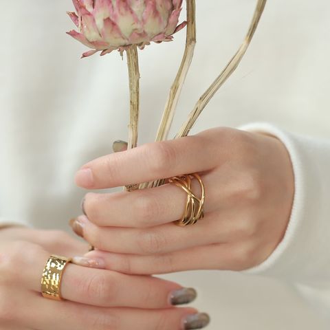 リング 指輪 ステンレス 金属アレルギー サージカルステンレス レディース つけっぱなし 変形 ワイド クロス ボリューム ランダム ライン ゴツめ 大ぶり メタル cream dot ゆうパケット [ゴールド_17号]