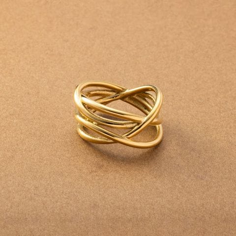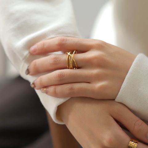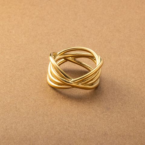 ランダムな多重クロスラインが特徴的なメタルワイドリング。ボリューミーで存在感がありながらも、緩やかな曲線を描くフォルムが女性らしく柔らかな印象。手元の華奢見えにもオススメなアイテムです。錆びにくく傷に強いステンレス製で、デイリーに活躍してくれます。