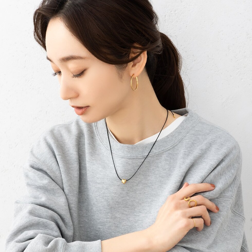 小粒でぷっくりとしたハートモチーフが可愛らしいストリングネックレス。さりげないサイズ感とブラックのコードが甘くなりすぎず使えるデザイン◎傷に強く変色しにくいステンレス製モチーフに、お好みの長さに調節ができるフリーアジャスター仕様なのも嬉しいひと品。