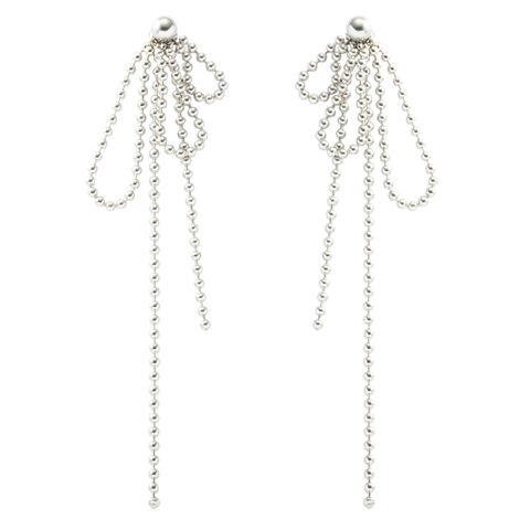 極小ボールチェーンをリボンのように象ったスタッドピアス。動くたびにお顔周りで揺れるモチーフが存在感バツグン。リボンチェーンを耳後ろから覗かせても可愛い2WAY仕様◎錆びにくく傷に強いステンレス製で、長時間の着用も安心の低アレルギー素材です。