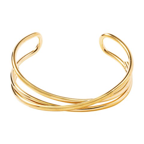 バングル ステンレス 金属アレルギー サージカルステンレス レディース つけっぱなし 太め ワイド オープン クロス メタル 艶 cream dot ゆうパケット [ゴールド_ワンサイズ]