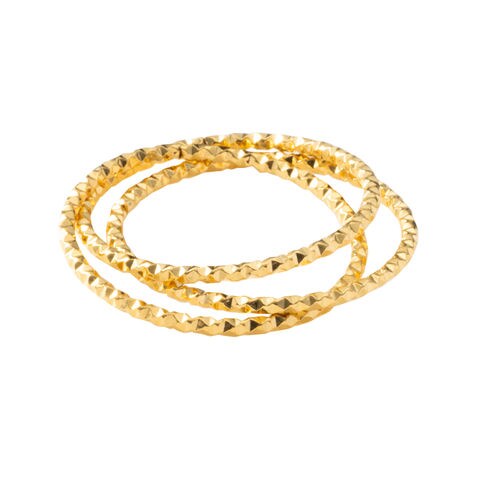ギザギザカッティングで表情豊かに煌く3連リング。上品な輝きが指先に存在感を与えてくれます。錆びにくく傷に強いステンレス製で、デイリーに活躍◎長時間の着用も安心の低アレルギー素材です。