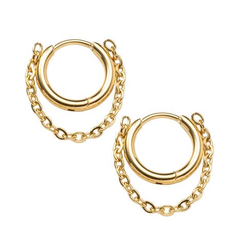 ピアス ステンレス 金属アレルギー サージカルステンレス レディース フープ つけっぱなし チェーン 2連 二重 揺れる 中折れ キャッチレス 開閉式 cream dot ゆうパケット [ゴールド_ピアス]