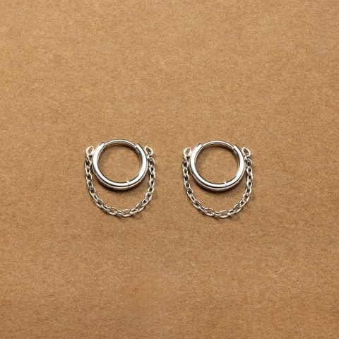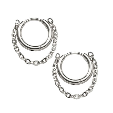 ピアス ステンレス 金属アレルギー サージカルステンレス レディース フープ つけっぱなし チェーン 2連 二重 揺れる 中折れ キャッチレス 開閉式 cream dot ゆうパケット [シルバー_ピアス]