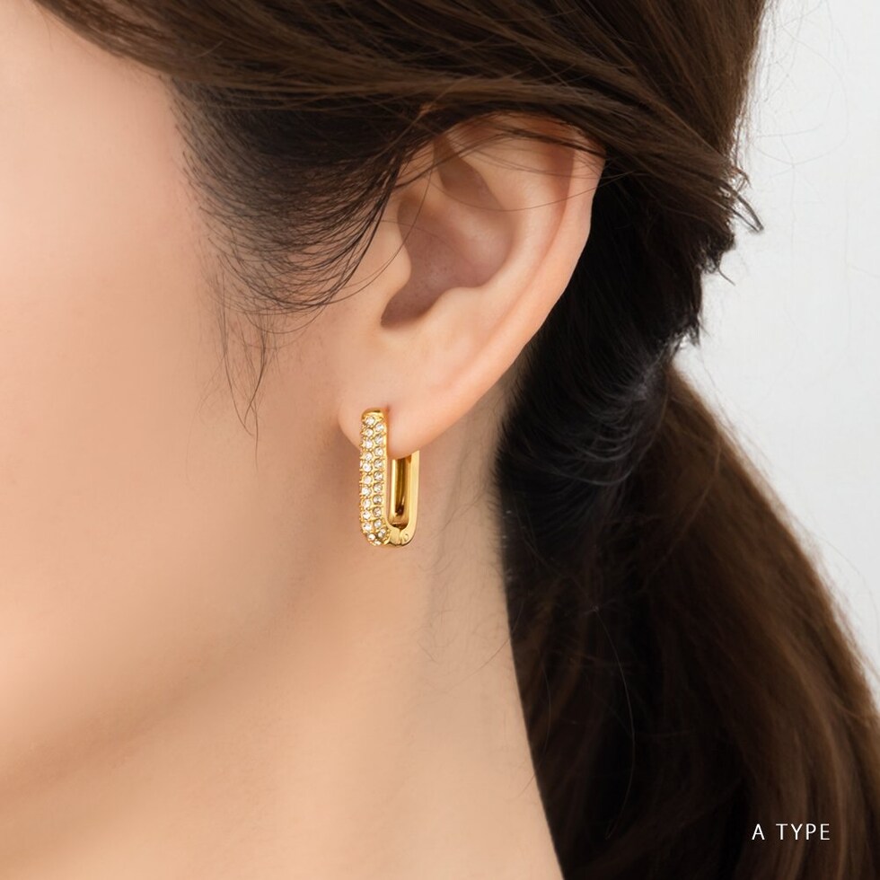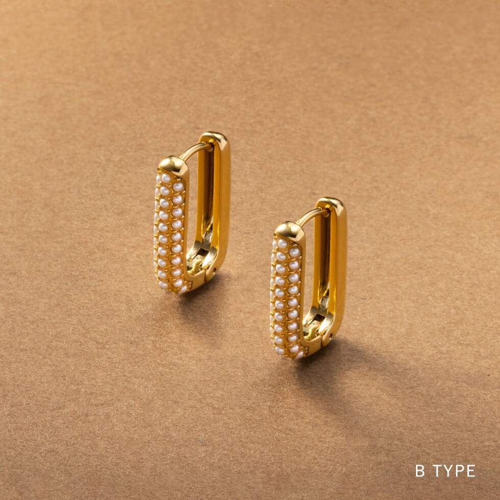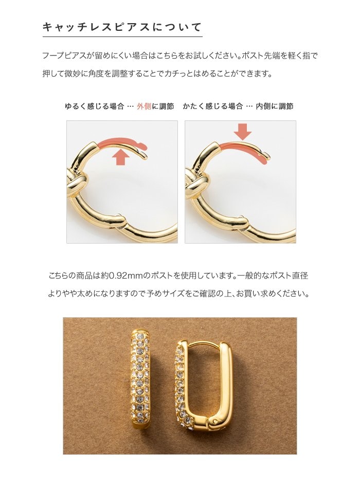 ピアス ステンレス 金属アレルギー サージカルステンレス レディース つけっぱなし パヴェ パール ビジュー オーバル キャッチレス 開閉式 2タイプ cream dot ゆうパケット [B:ゴールド_ピアス]