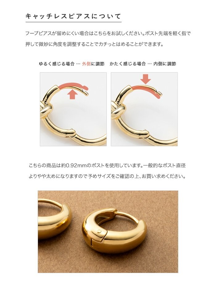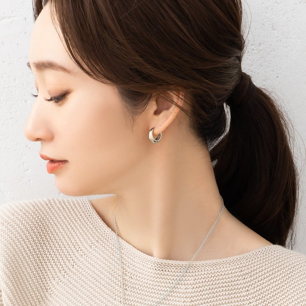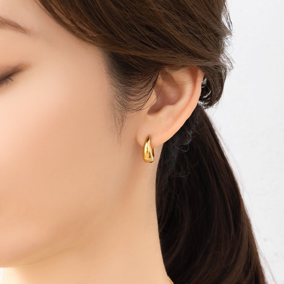 ぷっくりドロップフォルムのキャッチレスフープピアス。艶やかでシンプルなデザインが流行に左右されず長く愛用できるひと品。傷に強く錆びにくいステンレス製と程よいボリューム感が、デイリーユースにぴったりなアイテムです。
