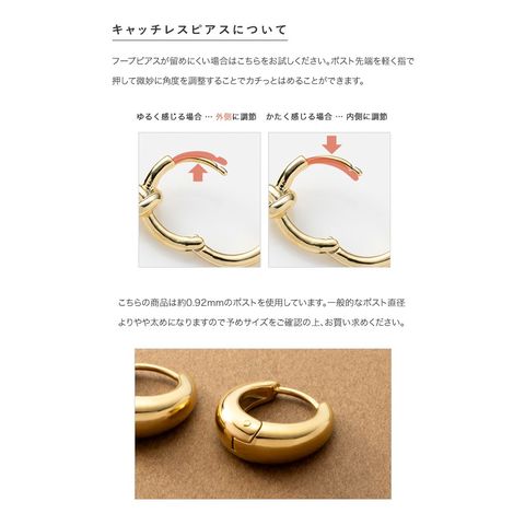 ぷっくりドロップフォルムのキャッチレスフープピアス。艶やかでシンプルなデザインが流行に左右されず長く愛用できるひと品。傷に強く錆びにくいステンレス製と程よいボリューム感が、デイリーユースにぴったりなアイテムです。