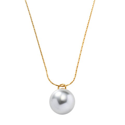 ネックレス ステンレス 金属アレルギー サージカルステンレス レディース つけっぱなし ショート チェーン パール 一粒パール 大粒 ビッグパール 12mm グレー cream dot ゆうパケット [ゴールド×グレー_ワンサイズ]