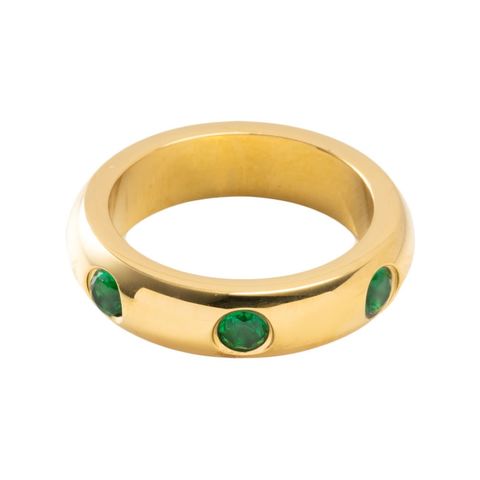リング 指輪 ステンレス 金属アレルギー サージカルステンレス レディース つけっぱなし ぷっくり ビジュー メタル cream dot ゆうパケット [ゴールド×グリーン_17号]