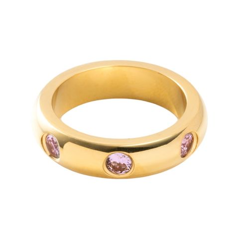 リング 指輪 ステンレス 金属アレルギー サージカルステンレス レディース つけっぱなし ぷっくり ビジュー メタル cream dot ゆうパケット [ゴールド×ピンク_17号]