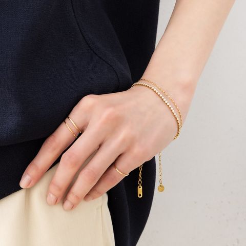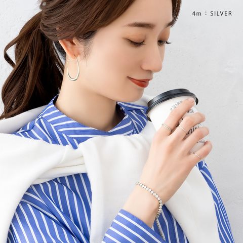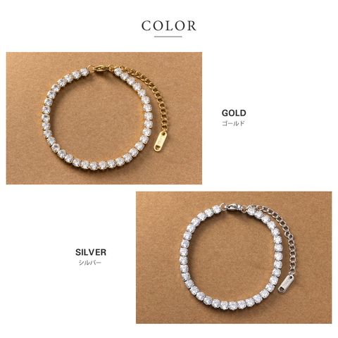 ラインビジューが手首に沿って煌くテニスブレスレット。リッチな輝きで、着けるだけで手元に上品さをプラスします。コーディネートに合わせて4つの幅からお選び頂けます。錆びにくく傷に強いステンレス製でデイリーに活躍しそう◎