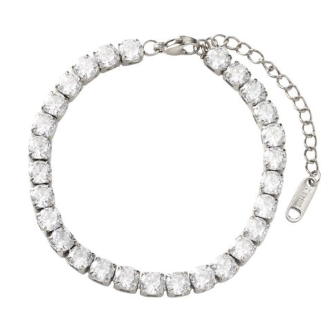 ラインビジューが手首に沿って煌くテニスブレスレット。リッチな輝きで、着けるだけで手元に上品さをプラスします。コーディネートに合わせて4つの幅からお選び頂けます。錆びにくく傷に強いステンレス製でデイリーに活躍しそう◎