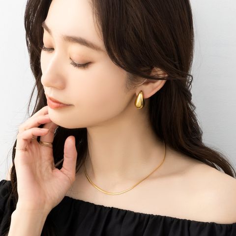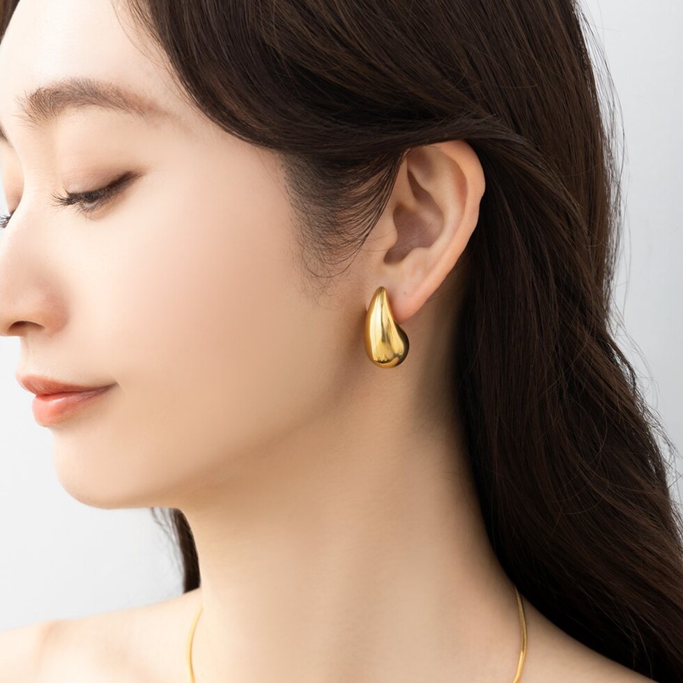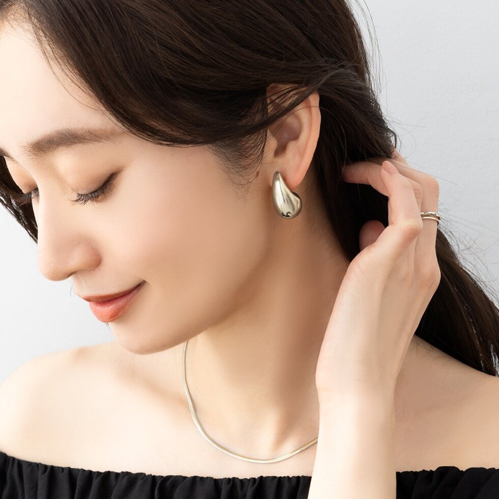 大振りでぷっくりとしたフォルムのドロップピアス。シンプルで艶やかなドロップモチーフがコーデのアクセントにピッタリなアイテム。カジュアルなスタイルも新鮮な雰囲気に仕上げてくれる、存在感をプラスするひと品です。