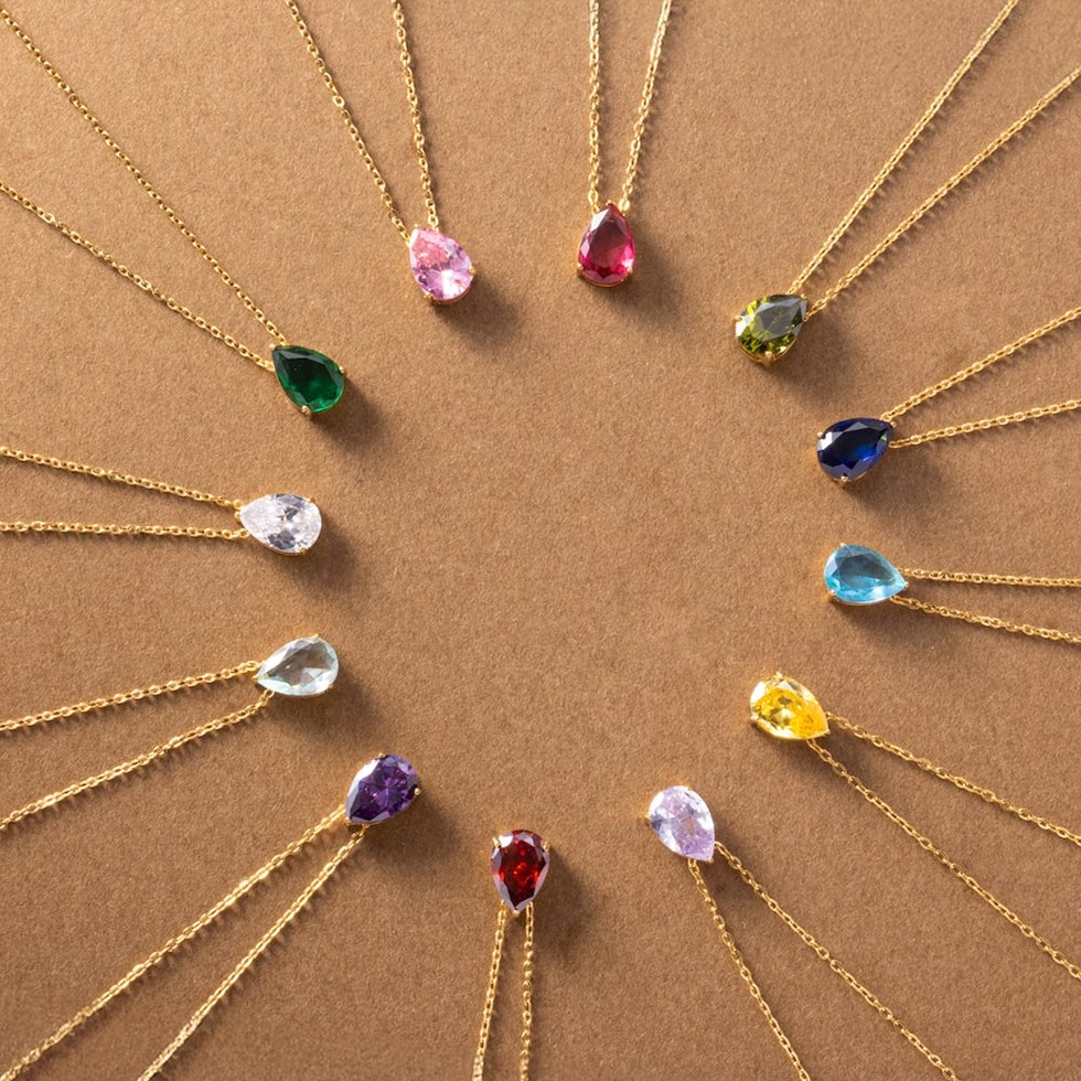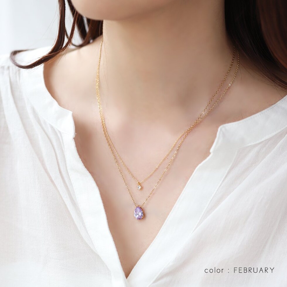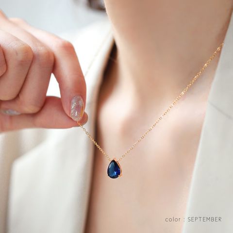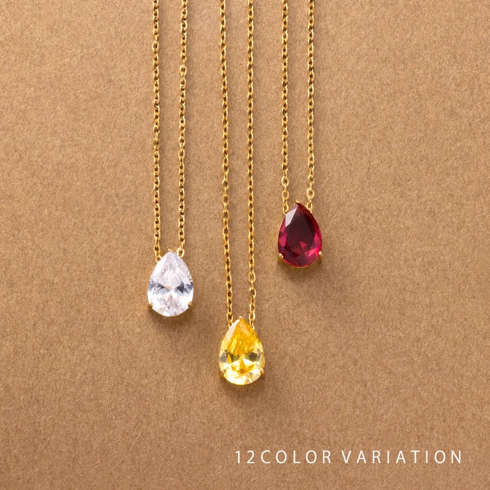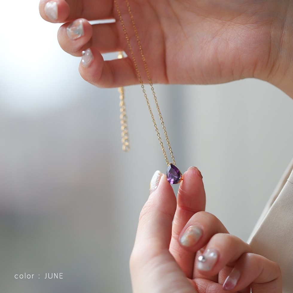 ネックレス ステンレス 金属アレルギー サージカルステンレス レディース つけっぱなし ショート チェーン ビジュー ドロップ しずく 誕生月カラー 誕生石カラー cream dot ゆうパケット [ゴールド_4月]