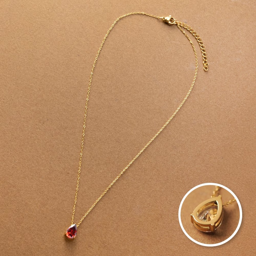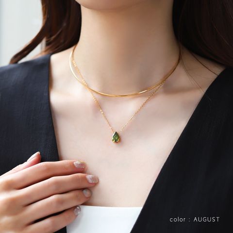 カッティングドロップがキラキラと煌くカラービジューネックレス。台座には光を通す穴が設けられていて、身につけた時も高級感たっぷりに輝きます。シンプルなネックレスやチョーカーとの重ねづけにもオススメ◎錆びにくく傷に強いステンレス製でデイリーに活躍間違いナシ。長時間の着用も安心の低アレルギー素材です。