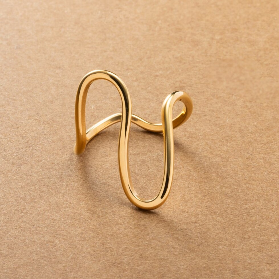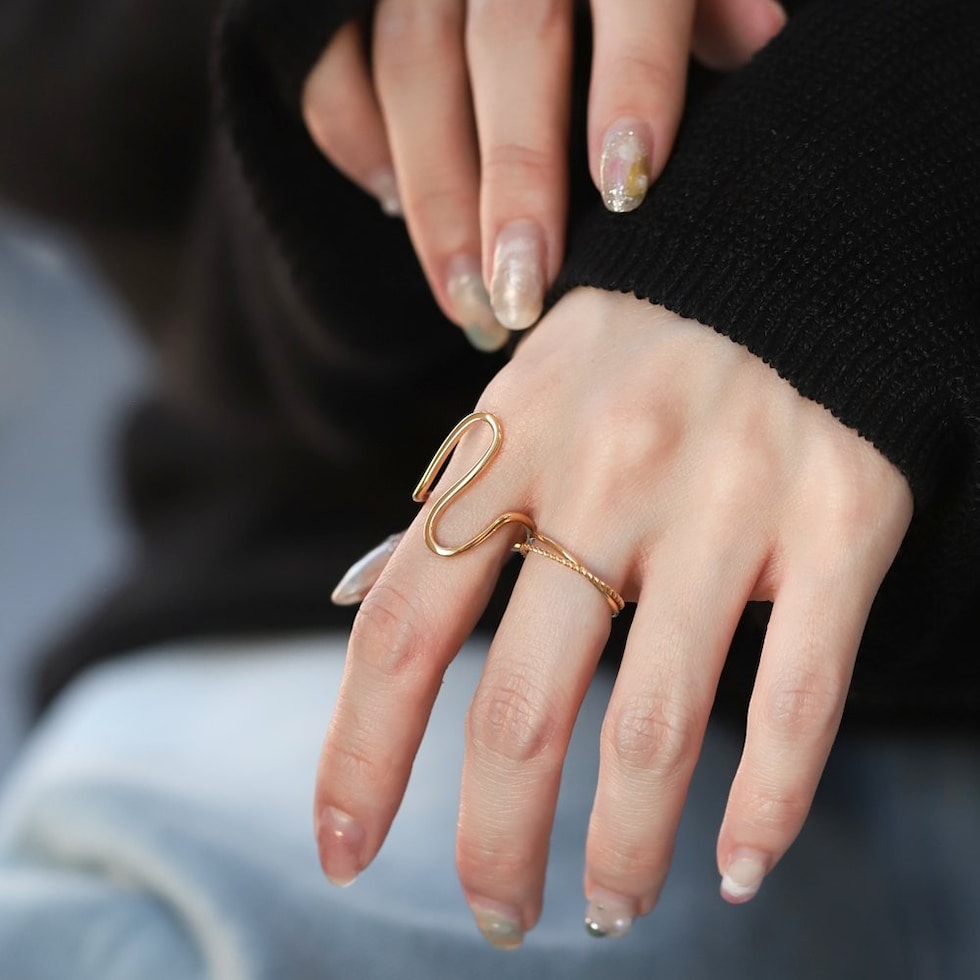変形シルエットがニュアンスたっぷりなリング。存在感たっぷりで、手元コーデの主役として活躍間違いナシ。これひとつでお洒落な手元にアップデートしてくれます◎錆びにくいステンレス製でデイリー使いにぴったり。