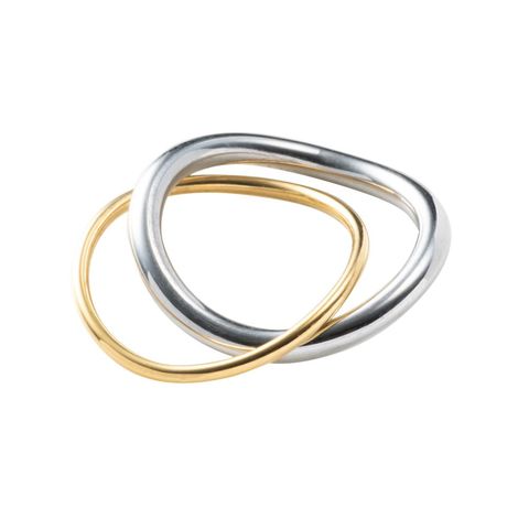 緩やかにカーブした太さの異なるリングを連ねたデザインリング。重ねての着用はもちろん、隣り合った指につけてダブルフィンガーリングとしても◎錆びにくく傷に強いステンレス製で、デイリーに活躍してくれます。長時間の着用も安心の低アレルギー素材です。