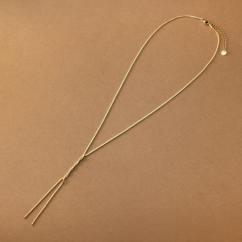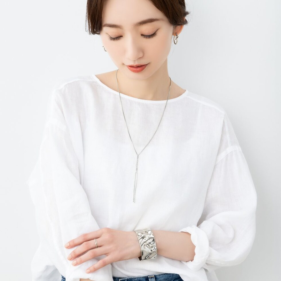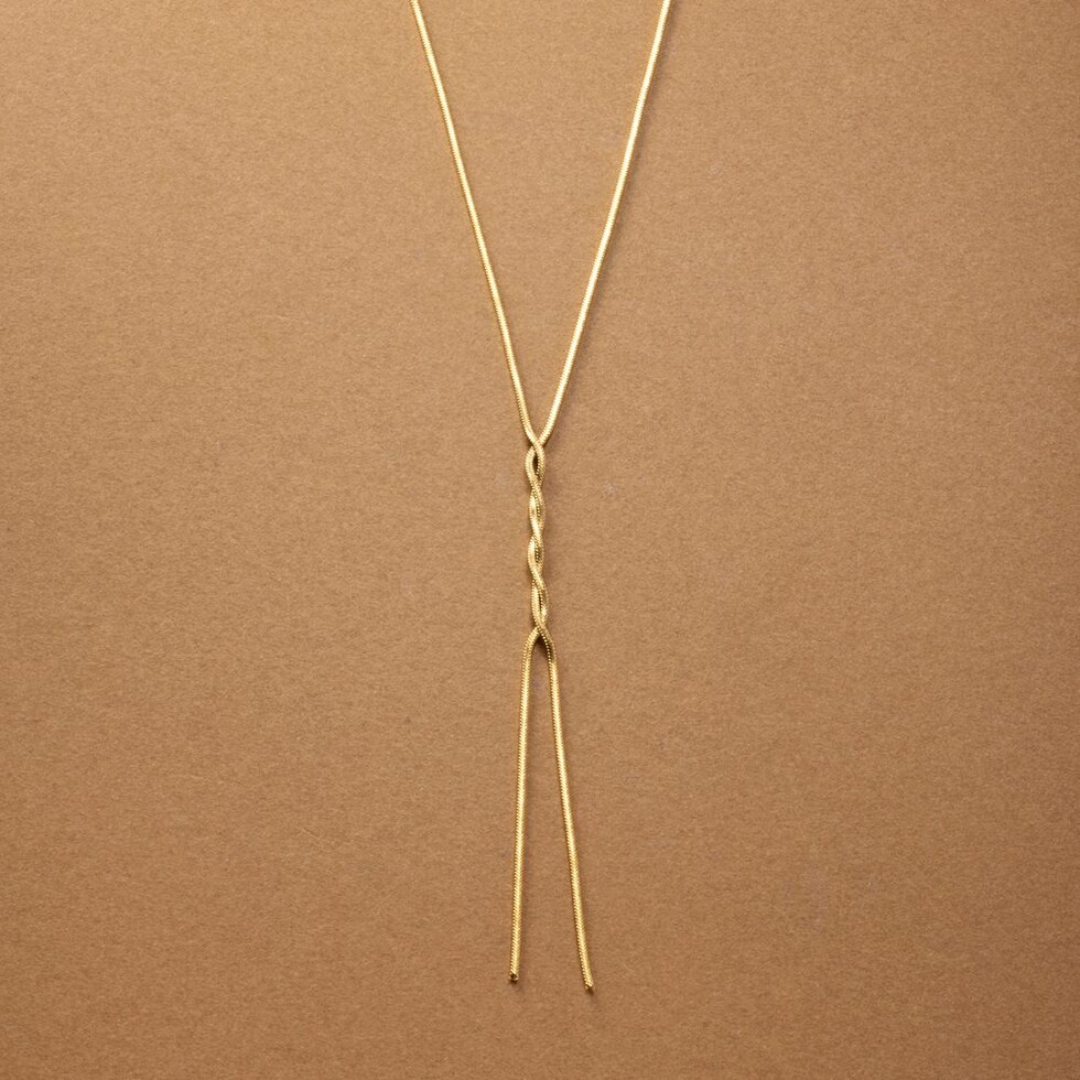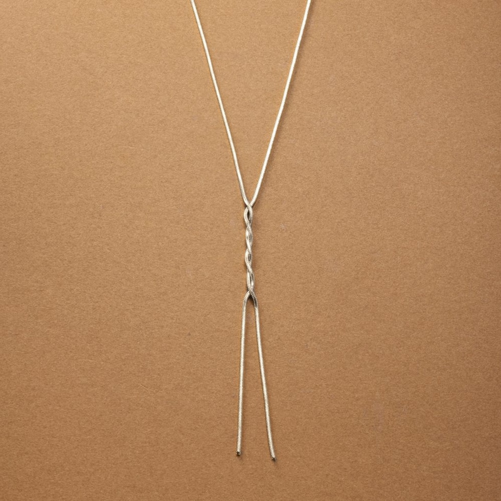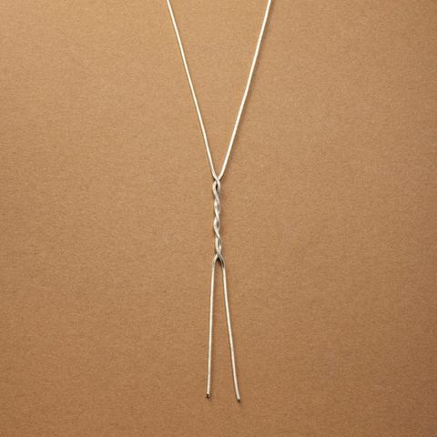 しなやかなスネークチェーンのロングネックレス。ツイストを加えたデザインが、スマートで大人な印象を演出します。無駄のない洗練されたラインで、スッキリとした品の良い艶めきをプラスしてくれるひと品。