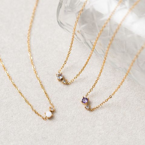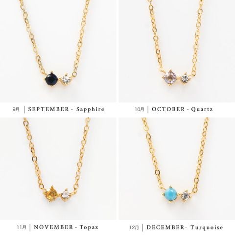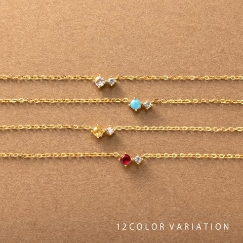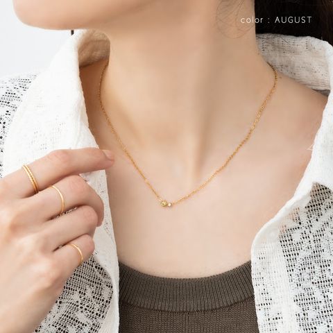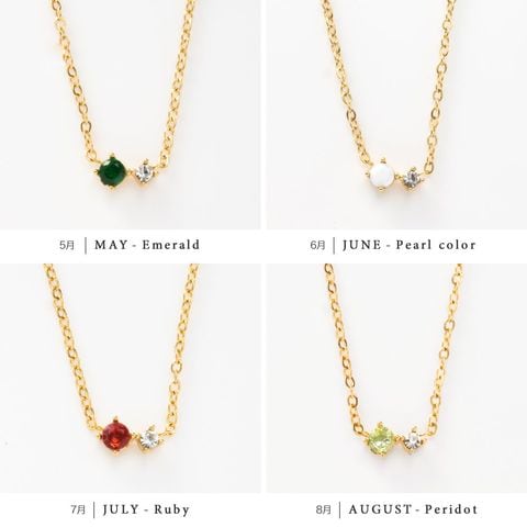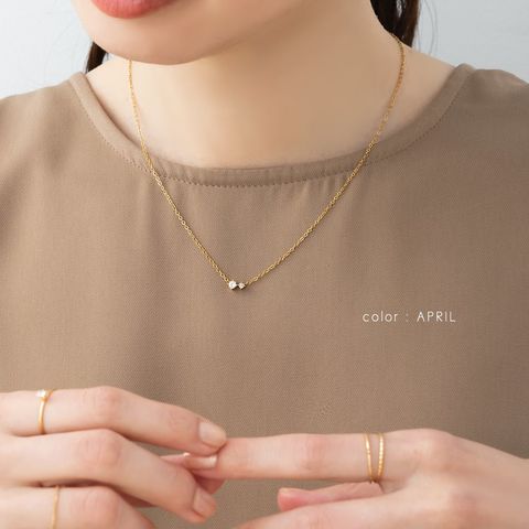 大小2色のビジューがキラキラと煌くネックレス。上品で使い勝手の良い小ぶりのモチーフはプレゼントにもオススメ◎誕生月をイメージしたビジューがコーデにさりげなくアクセントを添えてくれます。シンプルなデザインと錆びにくく傷に強いステンレス製でデイリーに活躍間違いナシ。長時間の着用も安心の低アレルギー素材です。