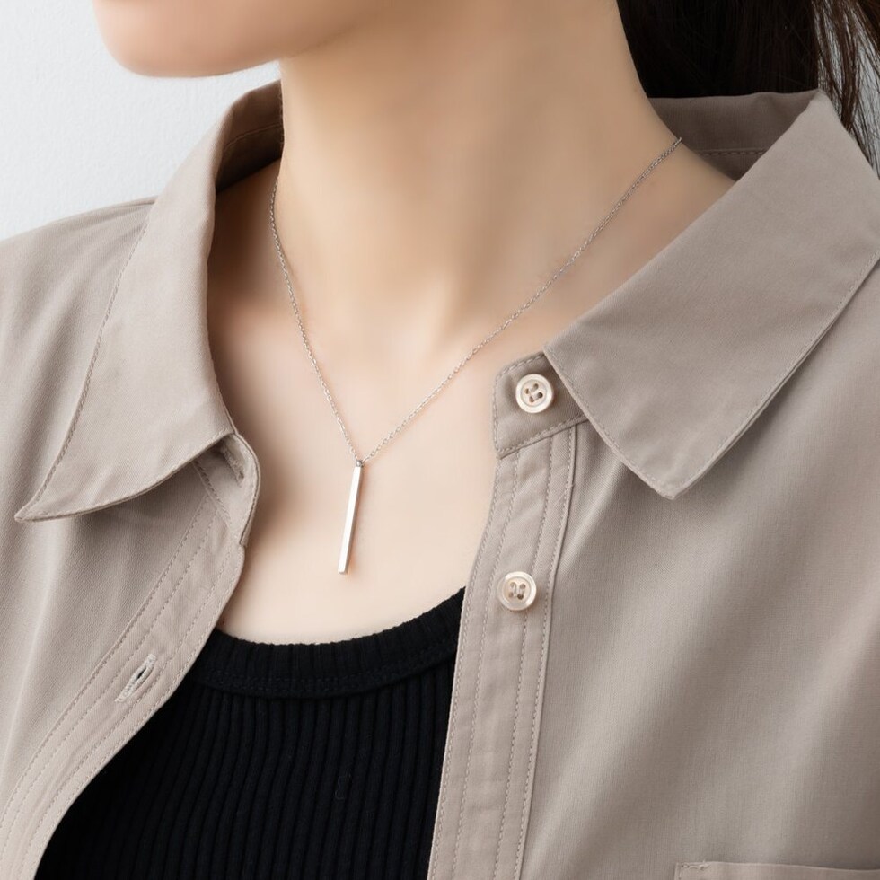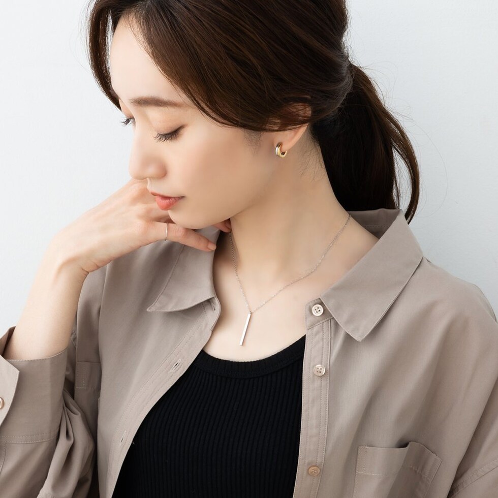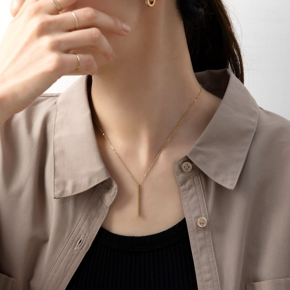 ミニマルなメタルバーが胸元を上品な印象に導くネックレス。余計な装飾のないデザインがノーブルな印象で、いつものコーデを練された雰囲気にチェンジ◎錆びにくいステンレス製でデイリーに活躍しそう。
