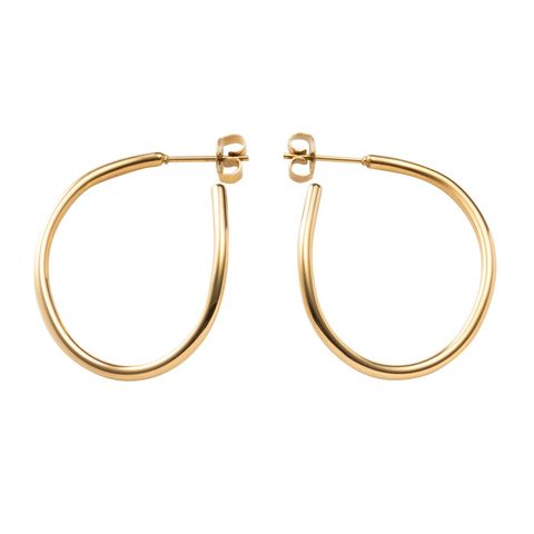 ひねりを加えた緩やかなウェーブラインが見る角度で表情を変えるフープピアス。シンプルに見えて個性的なフォルムのピアスは、身に着けるだけでジュエリー上級者に◎錆びにくく傷に強いステンレス製で、長時間の着用も安心の低アレルギー素材です。