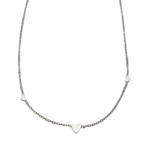 華奢なチェーンに合わせた小さめなハートプレートが可愛いネックレス。3つのハートの形が異なる遊びゴコロあるデザインが魅力◎デコルテに沿うモチーフが上品で大人な胸元を演出します。肌馴染みもよく錆びにくいステンレス製だからデイリー使いにぴったりの一品です。