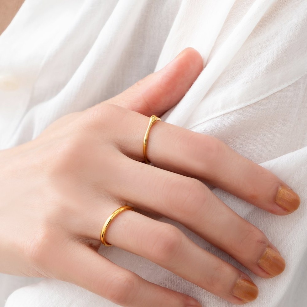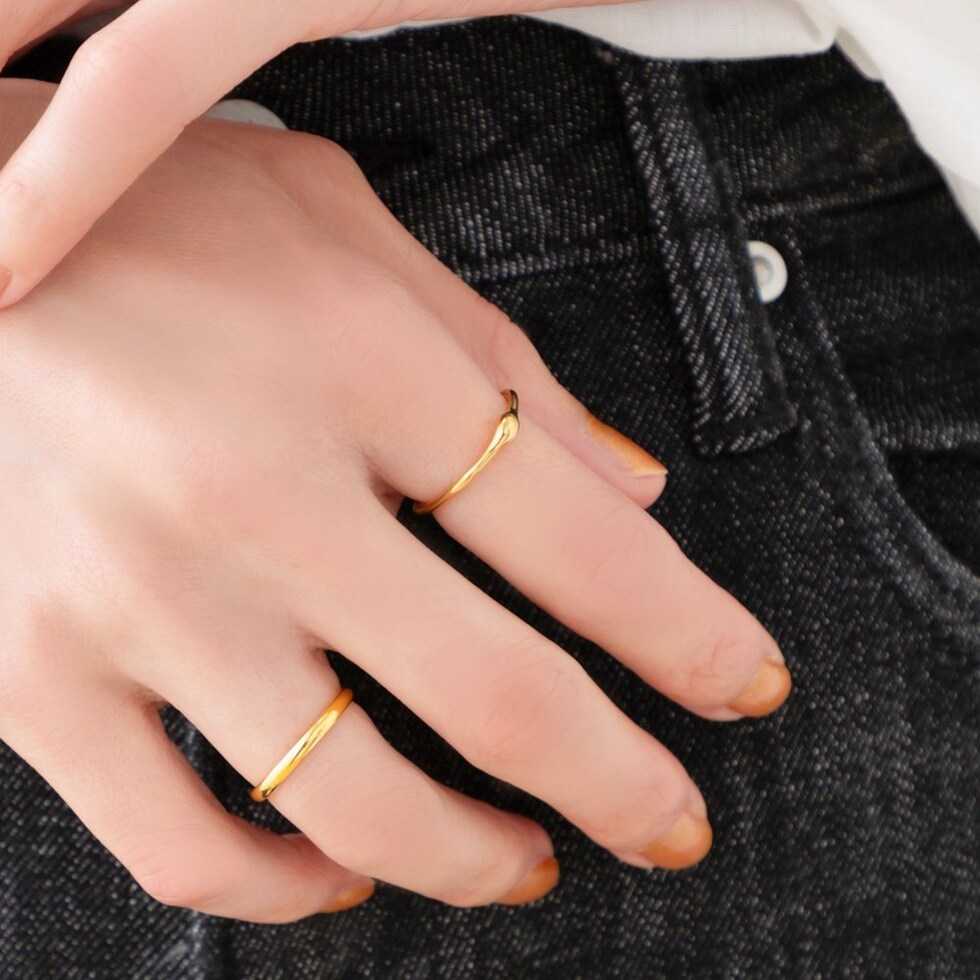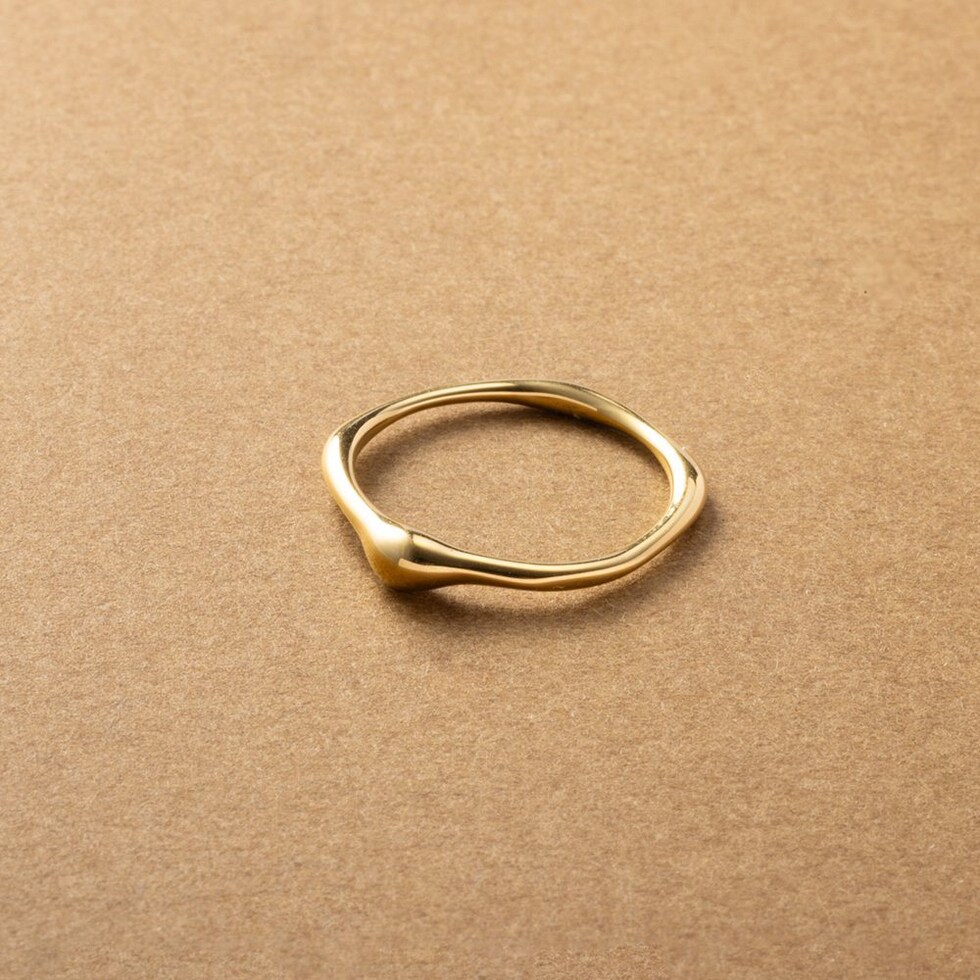ランダムにぷっくりした変形メタルラインがこなれ感のあるデザインリング。角度によって表情を変えるリングは手元に存在感をプラスします。錆びにくいステンレス製で、他のリングとの重ね付けも楽しめるデイリーにオススメなアイテム。
