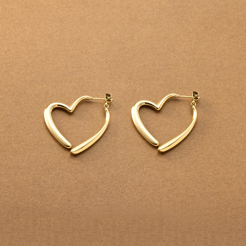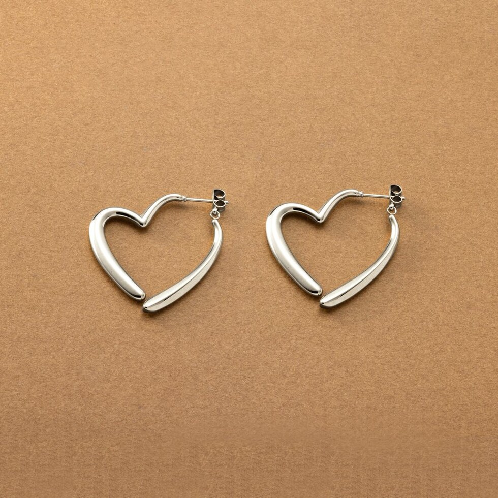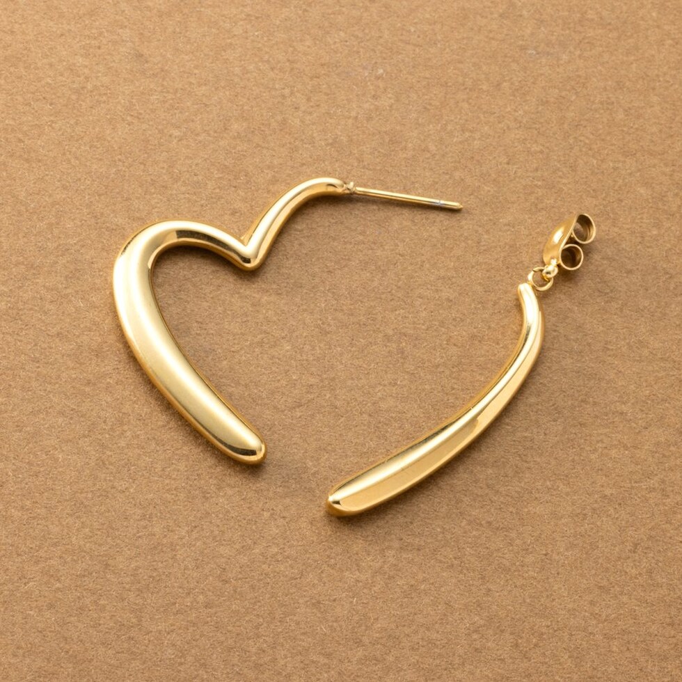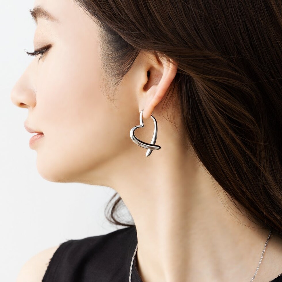 2つのモチーフを耳たぶに挟んでハートをつくるバックキャッチデザインのステンレス製ピアス。アンバランスに揺れるメタルハートが女心くすぐる逸品。大きめのサイジングでアクセントにもぴったり◎錆びにくいステンレス製でデイリーに活躍しそう。