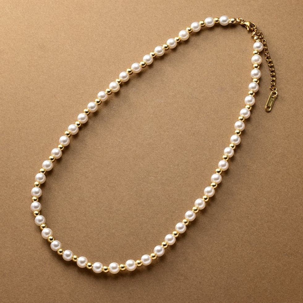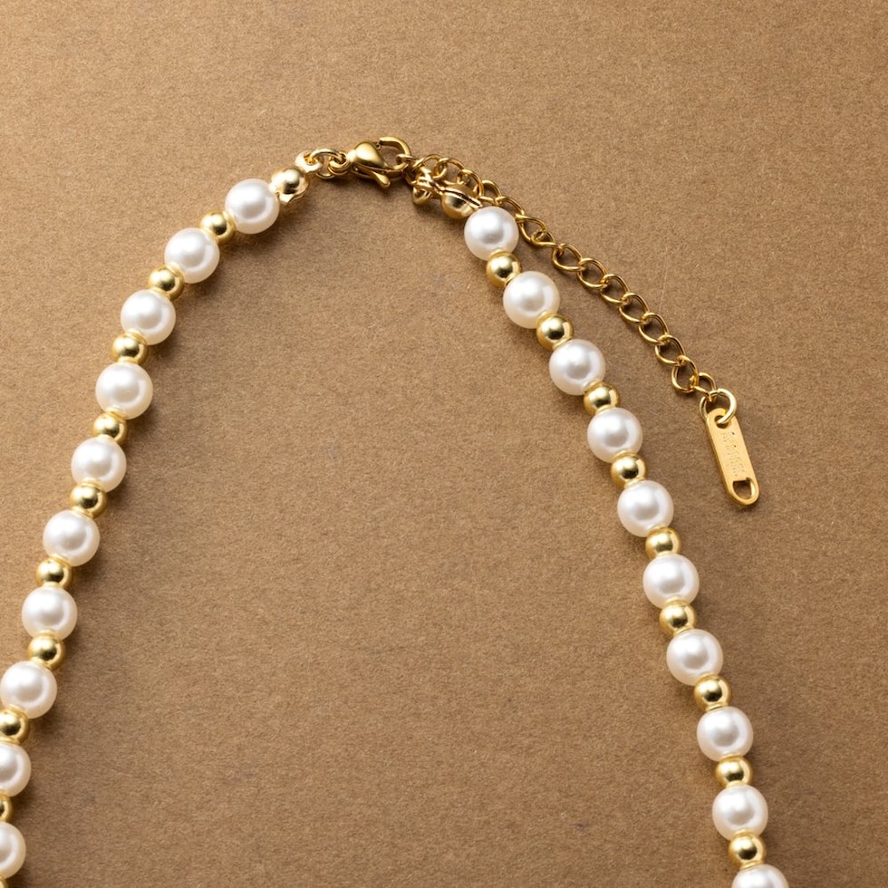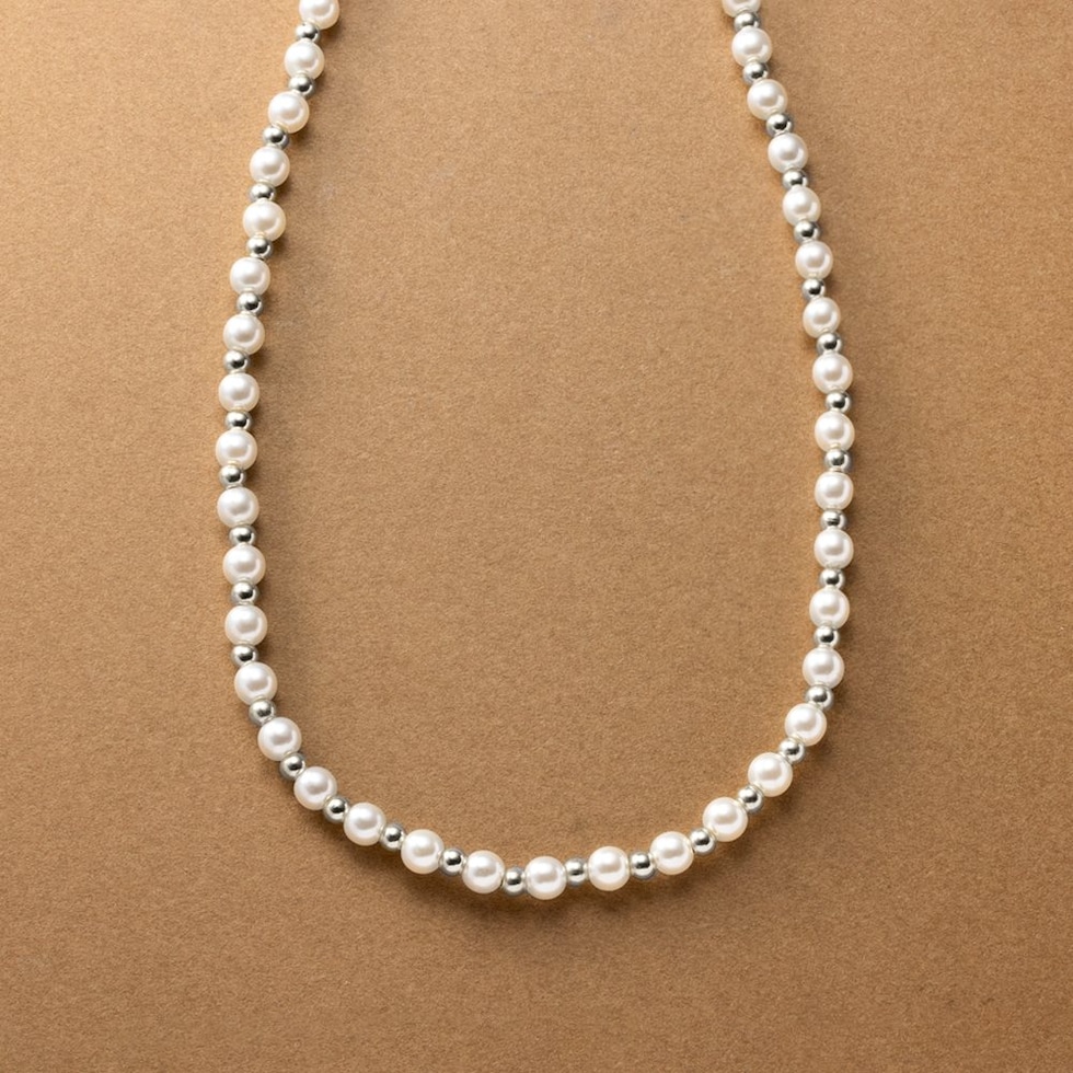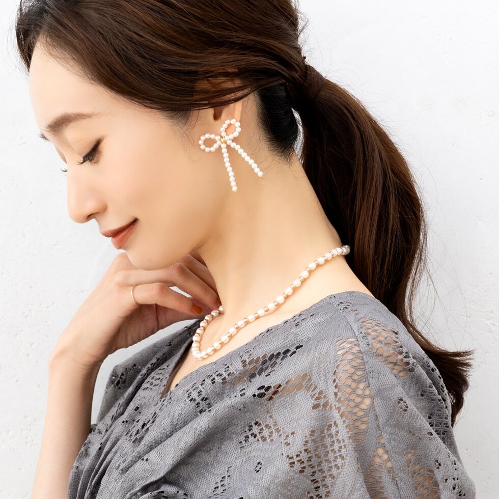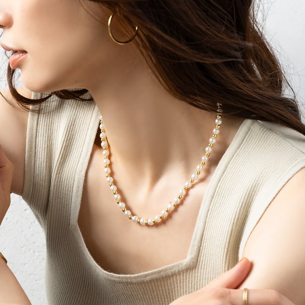 艶めくパールとメタルボールのネックレス。メタルボールのアクセントが目を惹き、こなれた雰囲気を演出する仕上がりに。カジュアルにもオケージョンにも合わせやすいひと品◎