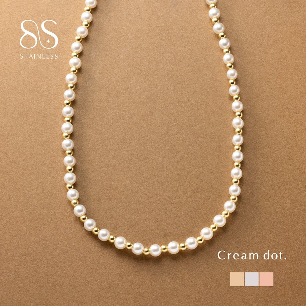 ネックレス ステンレス 金属アレルギー サージカルステンレス レディース つけっぱなし ショート チェーン パール メタルボール ミックス cream dot ゆうパケット [ゴールド_ワンサイズ]
