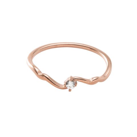 リング 指輪 ステンレス 金属アレルギー サージカルステンレス レディース つけっぱなし ウェーブ 波 ライン ビジュー 一粒 極細 細い cream dot ゆうパケット [ピンクゴールド_9号]
