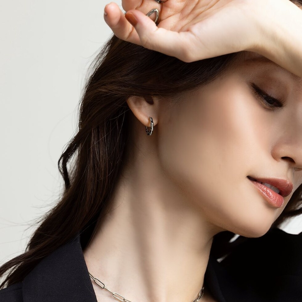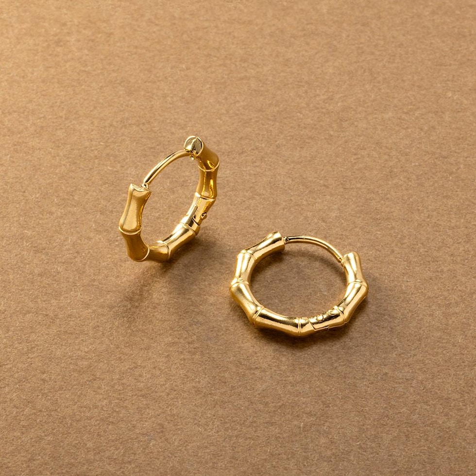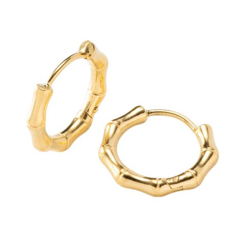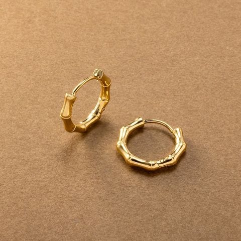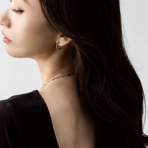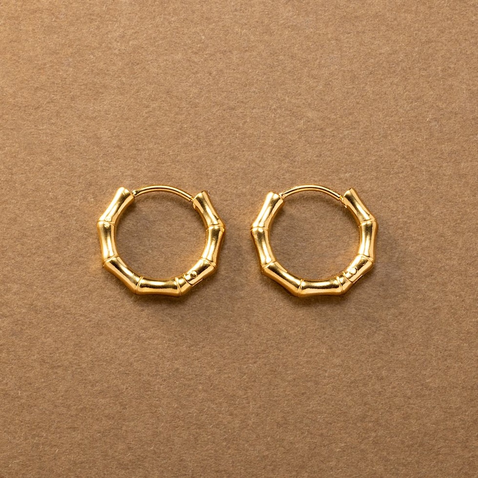 品良く艶めくバンブーデザインのステンレス製フープピアス。開閉式のキャッチレスタイプで簡単に装着できるのも嬉しいひと品◎ちょっぴり個性をプラスしたデザインと、程よいサイズ感でオンオフ問わず活躍してくれるアイテムです。