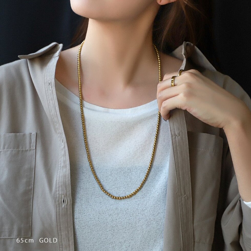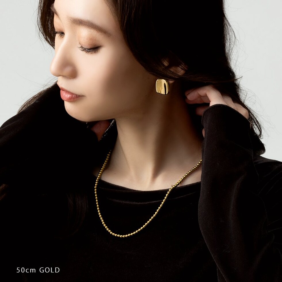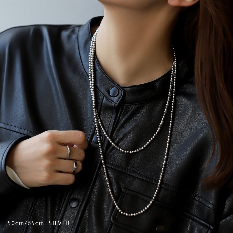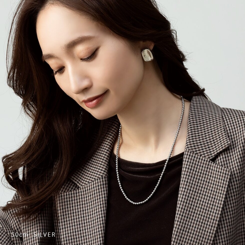 50cm/65cmの2サイズから選べるメタルボールネックレス。サラッと着けるだけでコーデをグッと印象的に仕上げます。長時間の着用にも安心なステンレス製で、デイリーに活躍してくれるアイテムです。