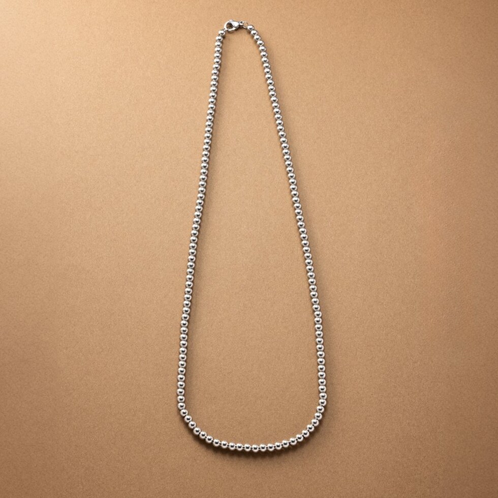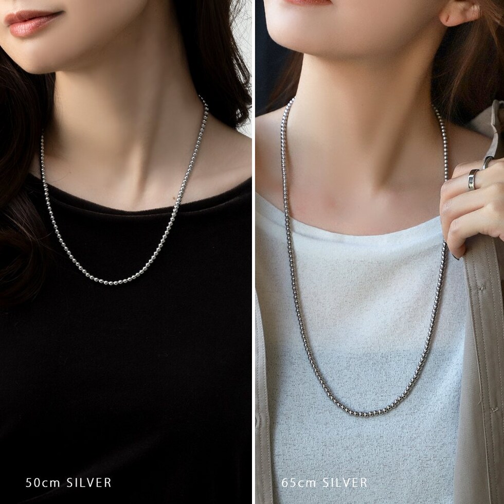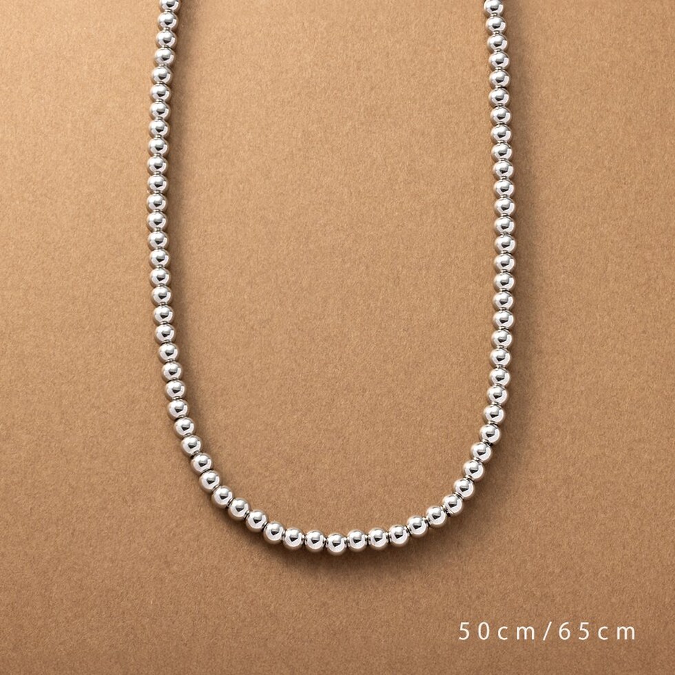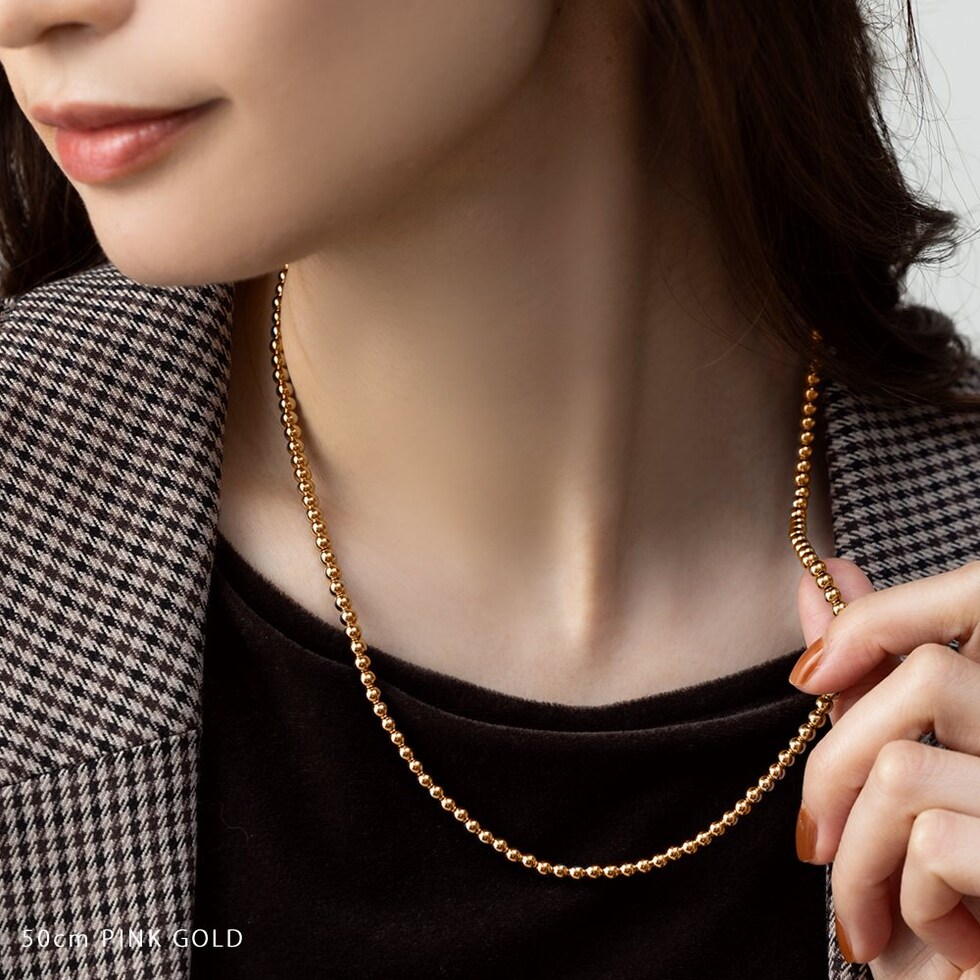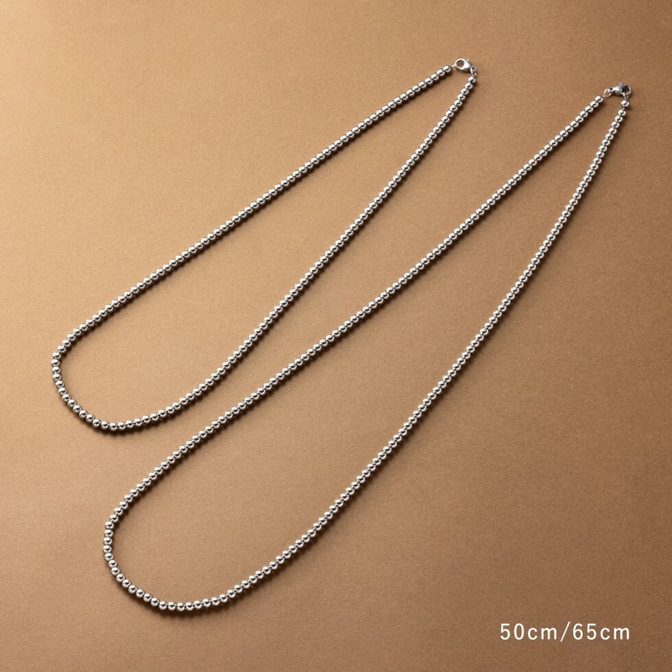 50cm/65cmの2サイズから選べるメタルボールネックレス。サラッと着けるだけでコーデをグッと印象的に仕上げます。長時間の着用にも安心なステンレス製で、デイリーに活躍してくれるアイテムです。
