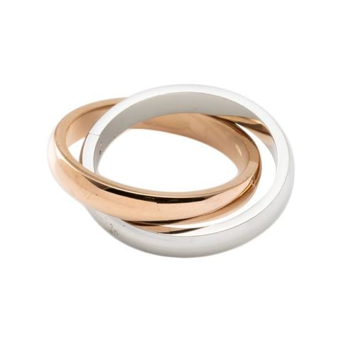 コンビカラーの2連ツイストが存在感をプラスするリング。甲丸の艶やかなメタルリングが手元を洗練された印象に格上げするひと品。どんなコーデともマッチするコンビカラーはひとつあると便利なアイテムです。