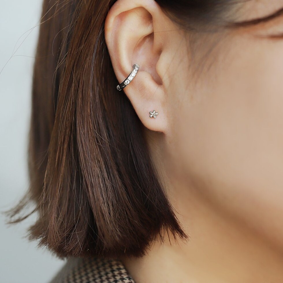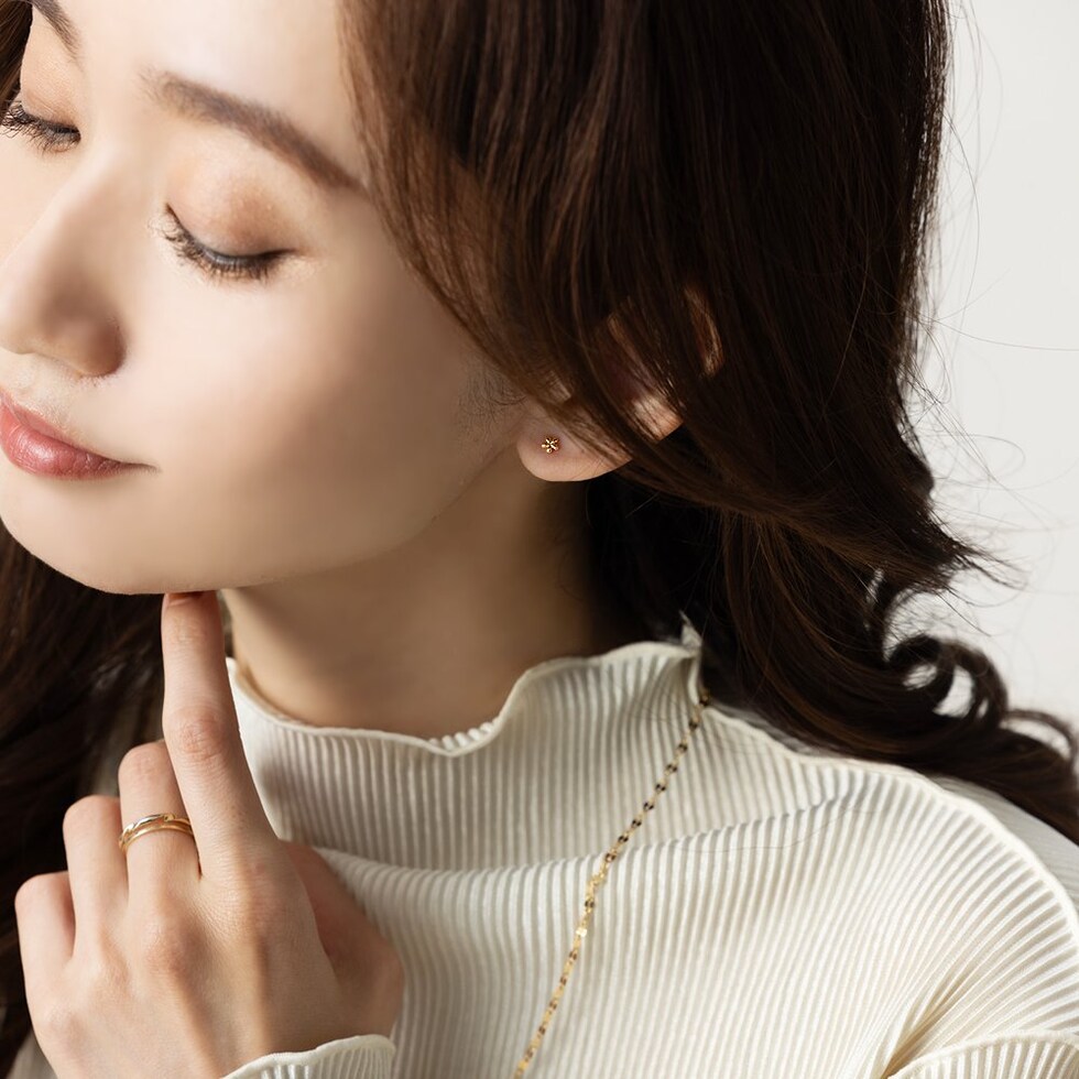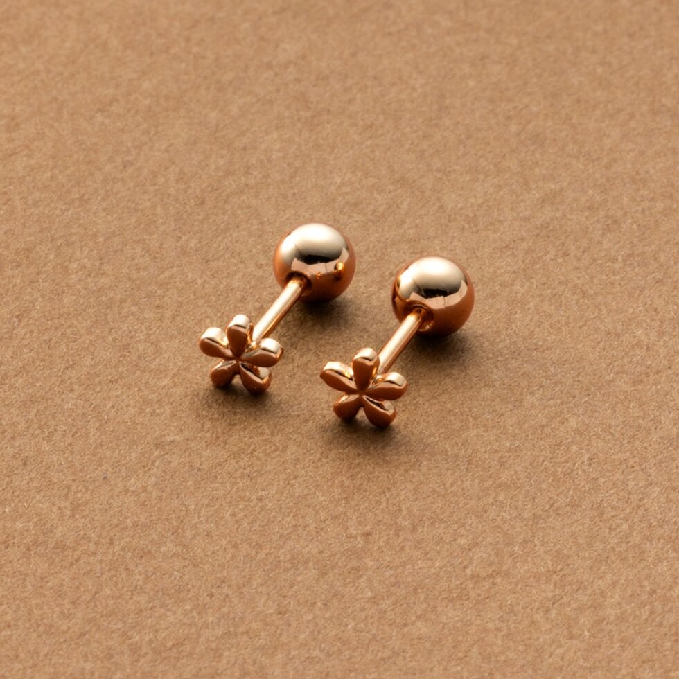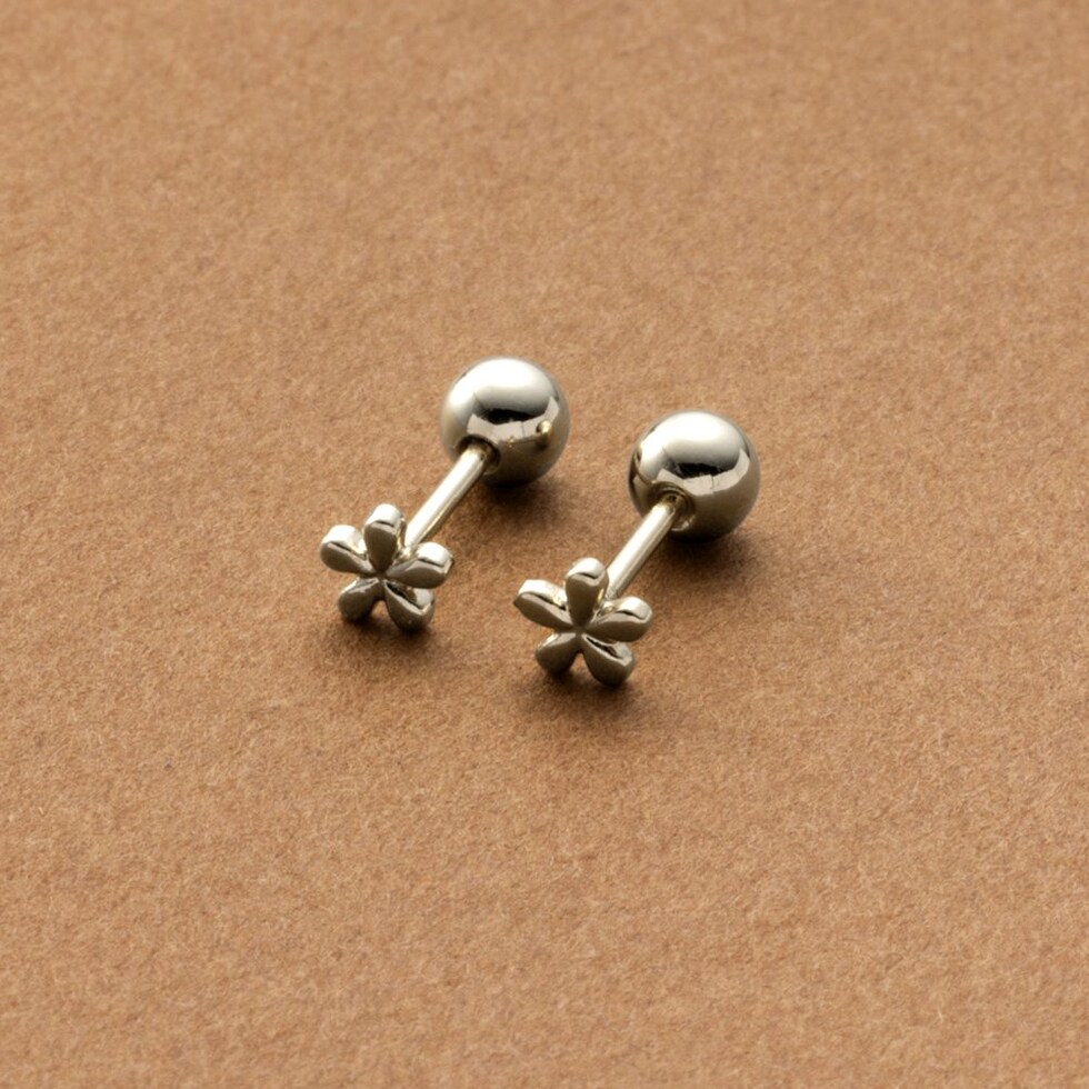 マイクロフラワーのステンレス製スクリューロックピアス。ミニミニフラワーが可憐な印象に◎メタルボールのキャッチで目立ちにくく気にならないのも嬉しいひと品。シングルはもちろんカフと重ね着けにもオススメです。錆びにくいステンレス製でデイリーに活躍しそう。