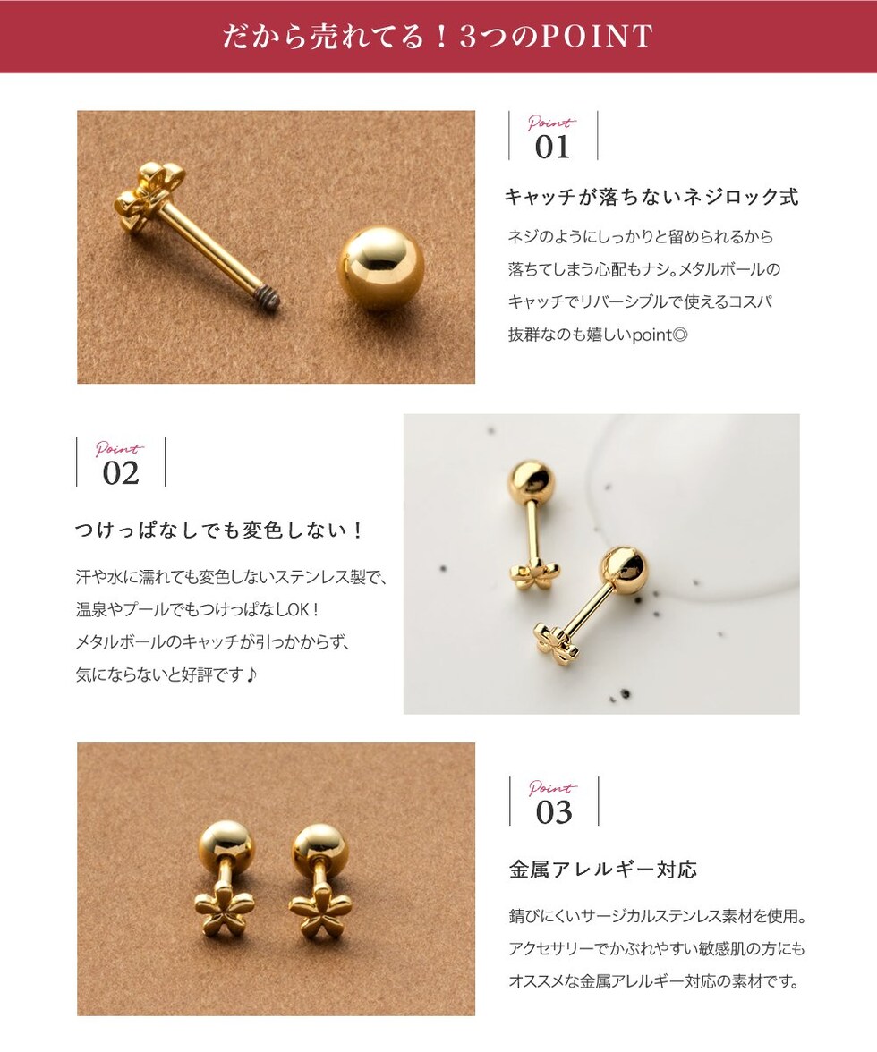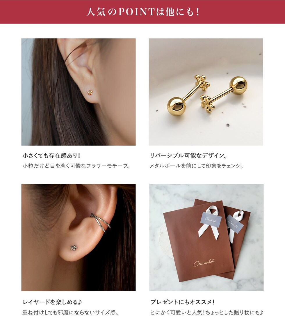ピアス ステンレス 金属アレルギー サージカルステンレス レディース つけっぱなし ネジロック式 スクリューロック マイクロ 極小 フラワー cream dot ゆうパケット [ゴールド_ピアス]