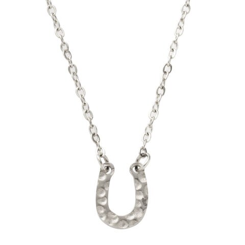 表面に槌目加工を施し凹凸を持たせた馬蹄モチーフのネックレス。シンボリックなデザインが胸元にさりげない煌めきを添えてくれます。華奢チェーンとシンプルで上品なフォルムがコーデを選ばないから重宝しそう◎肌馴染みもよく錆びにくいステンレス製だからデイリー使いにぴったりの一品です。