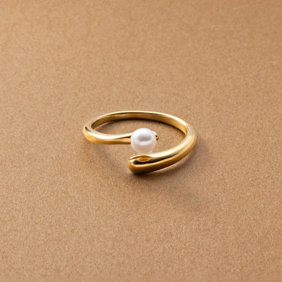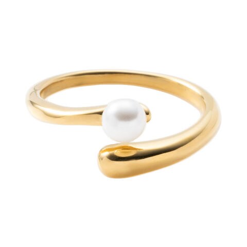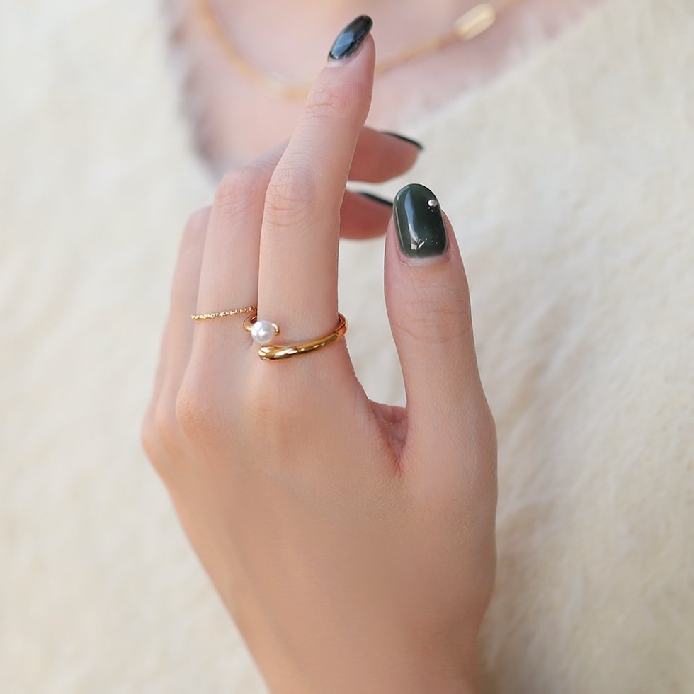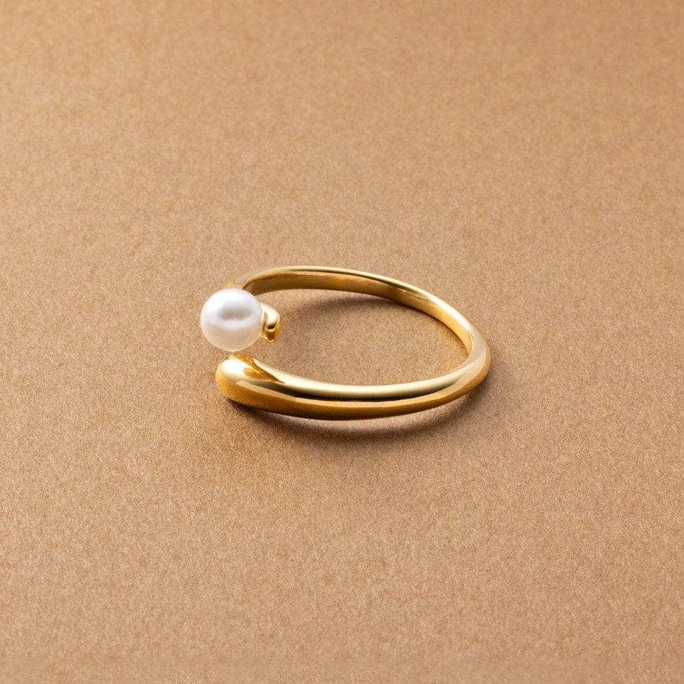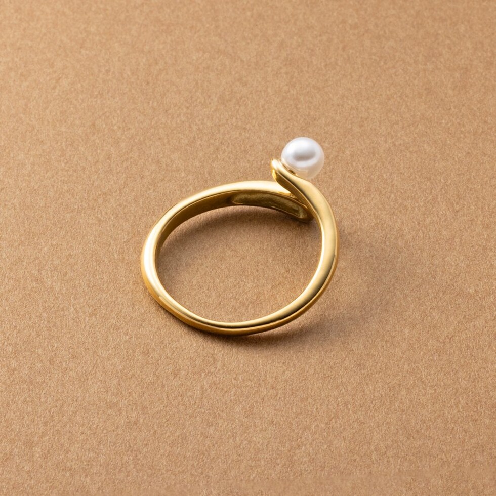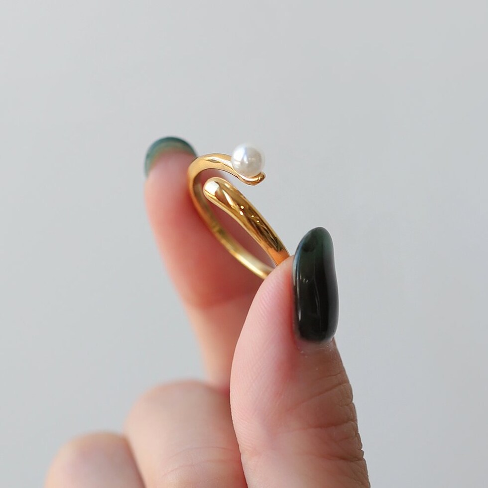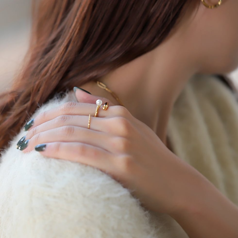さりげなく目を惹く一粒パールのオープンデザインリング。ニュアンスのあるメタルラインが手元を美しく仕上げます。指先で可愛らしく艶めくパールが女性らしい雰囲気を演出するひと品。