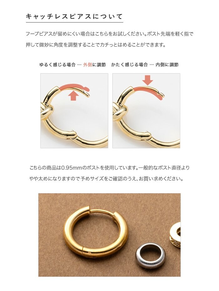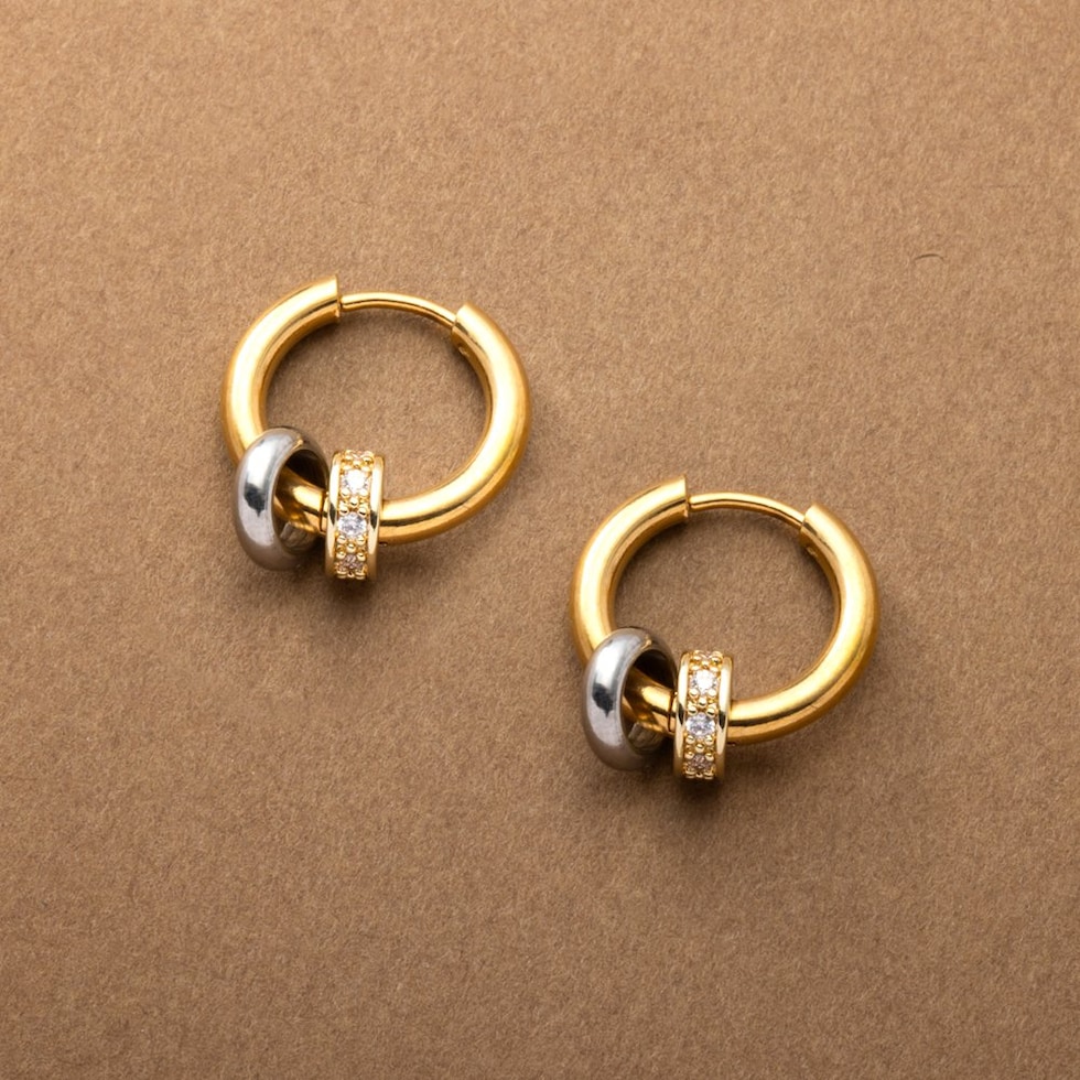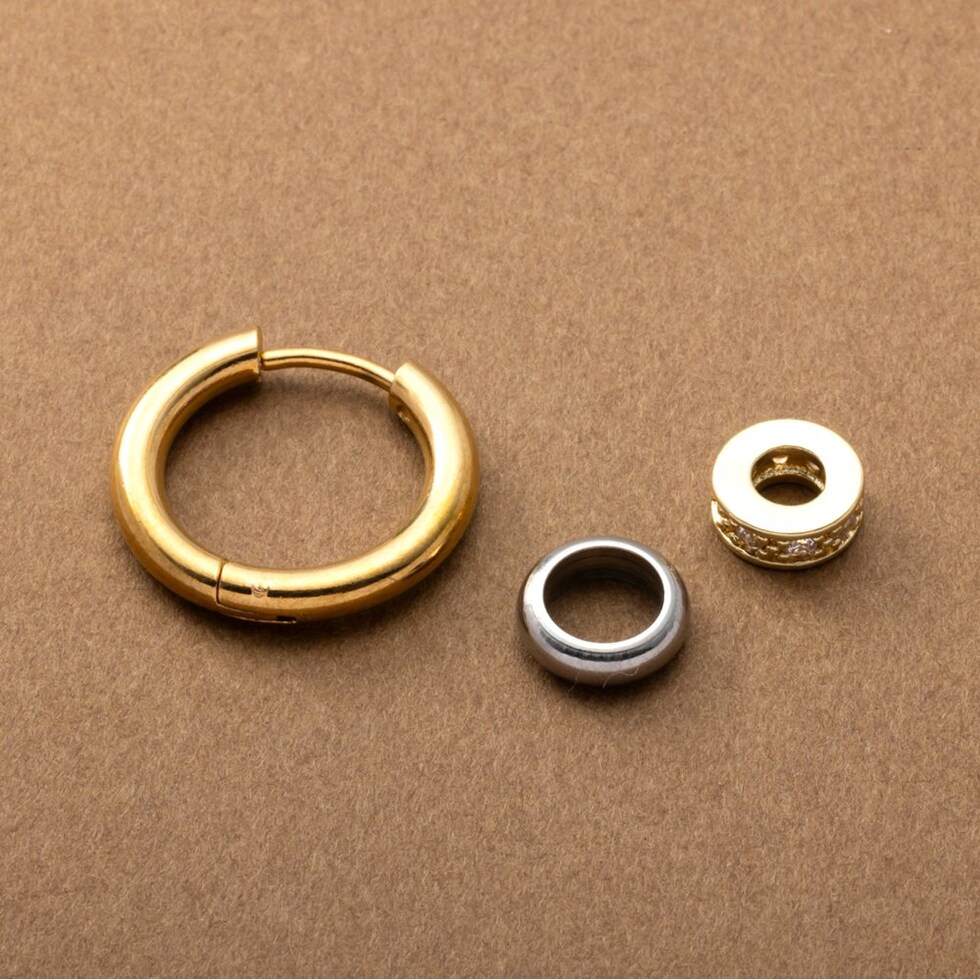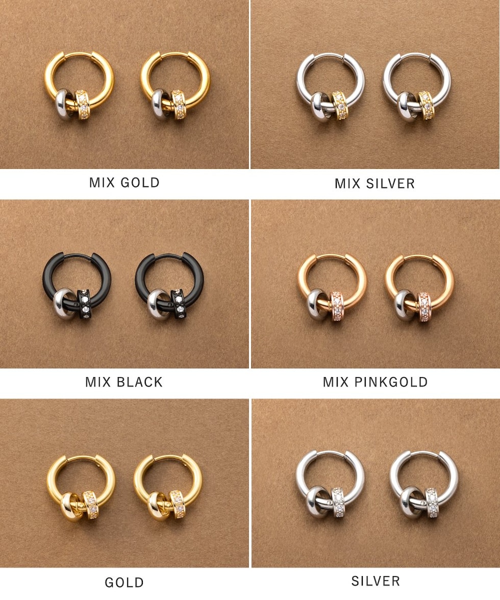 3WAYで“使える”バイカラーリングのステンレス製キャッチレスフープピアス。2つのリングは取り外し可能でアレンジ自由自在。流行りに流されないオトナ上品なシンプルデザインで長い期間重宝しそう。錆びにくいステンレス製でデイリーに使えちゃいます◎