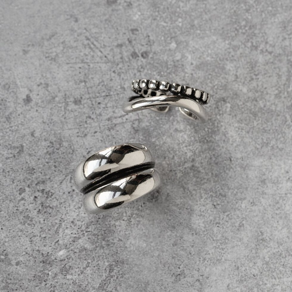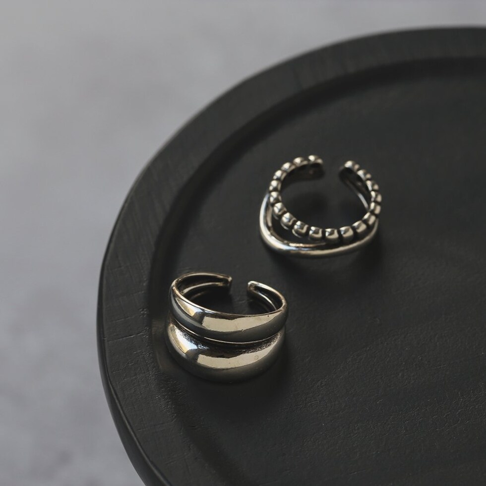 存在感のあるプランプ&ウェーブの2点セットオープンリング。絶妙なボリューム感が、他とはひと味違った洗練された手元を演出してくれます。表面に施したSILVER925コーティングがこなれた雰囲気をプラスします。