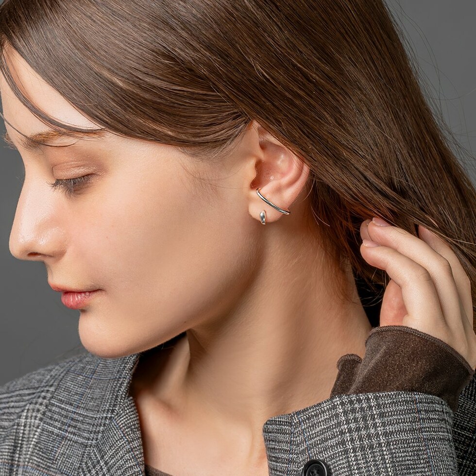 重ね着けしてるようなレイヤード風デザインの片耳用イヤーカフ。シンプルながら個性的なデザインで、一点投入するだけでこなれ感のある印象的な耳元を演出します。お手入れすることで長くご愛用頂けるシルバー925素材です。