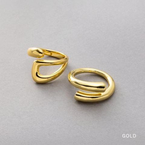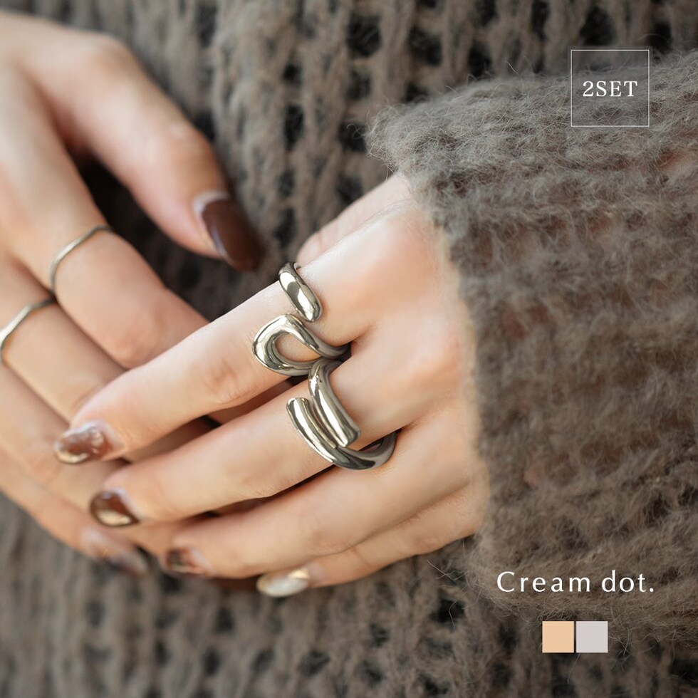 リング 指輪 レディース 2点セット オープンリング セットリング レイヤード風 メタル ライン 変形 歪み cream dot ゆうパケット [ゴールド_フリーサイズ]