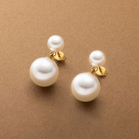 ピアス ステンレス 金属アレルギー サージカルステンレス レディース つけっぱなし パール ダブル ビッグパール 揺れる 存在感 スタッド cream dot ゆうパケット [ゴールド_ピアス]