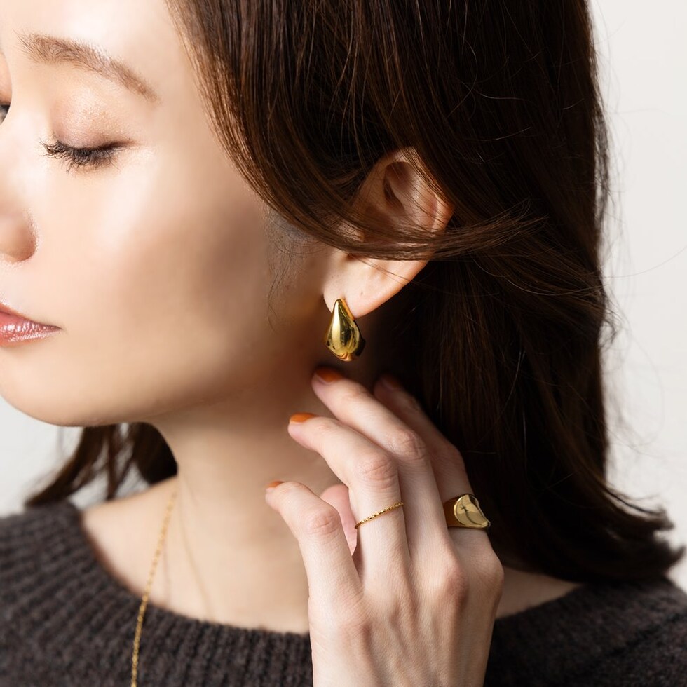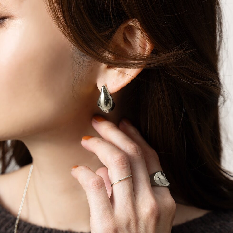 ぷっくりドロップのステンレス製ピアス。雫のようなニュアンスあるぷっくりフォルムとメタルの艶感が大人顔へと導くマストアイテム。錆びにくいステンレス製でデイリーに活躍しそう◎