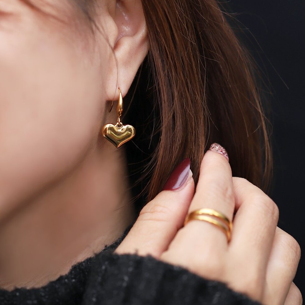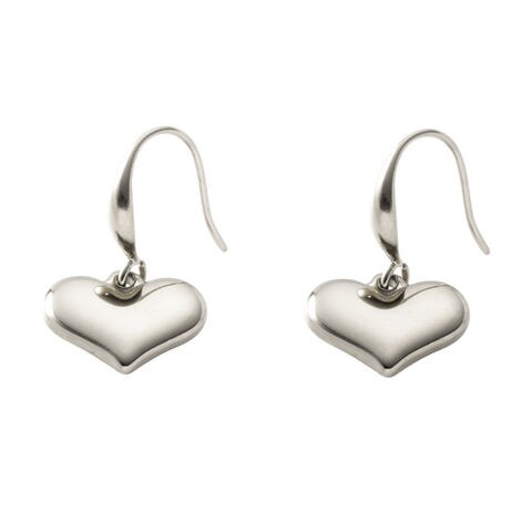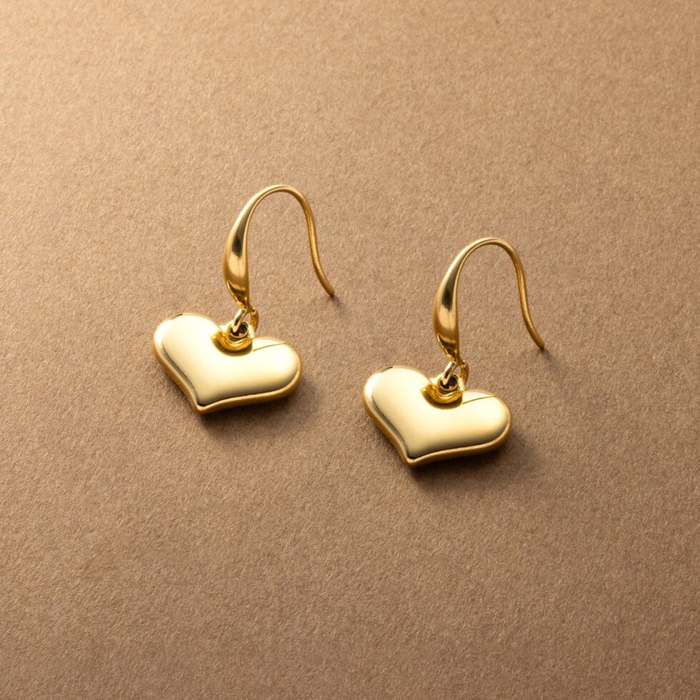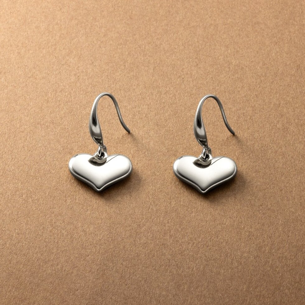 ニュアンスあるハートモチーフが耳元で揺らめくフックピアス。メタル素材で甘くなりすぎず、大人可愛い印象に◎カジュアルスタイルにも、大人シンプルスタイルにも合わせやすいデザインです。錆びにくく傷に強いステンレス製で、長時間の着用も安心の低アレルギー素材です。